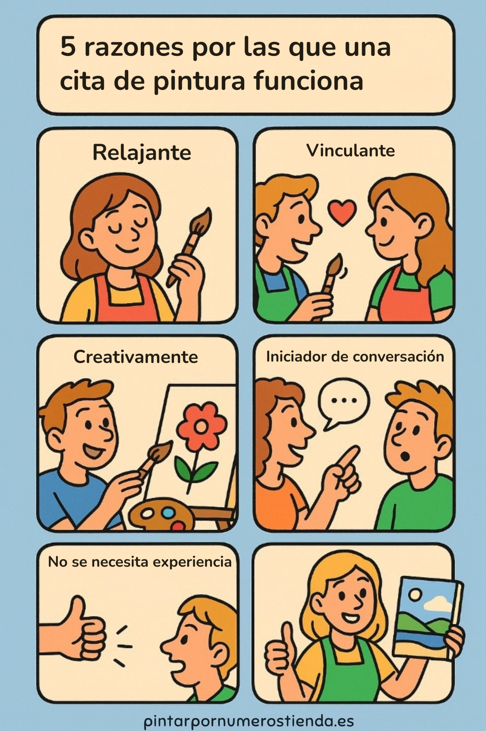 - Crear un cuadro juntos también puede llevar a conversaciones divertidas y profundas, lo que les hará sentirse más conectados.