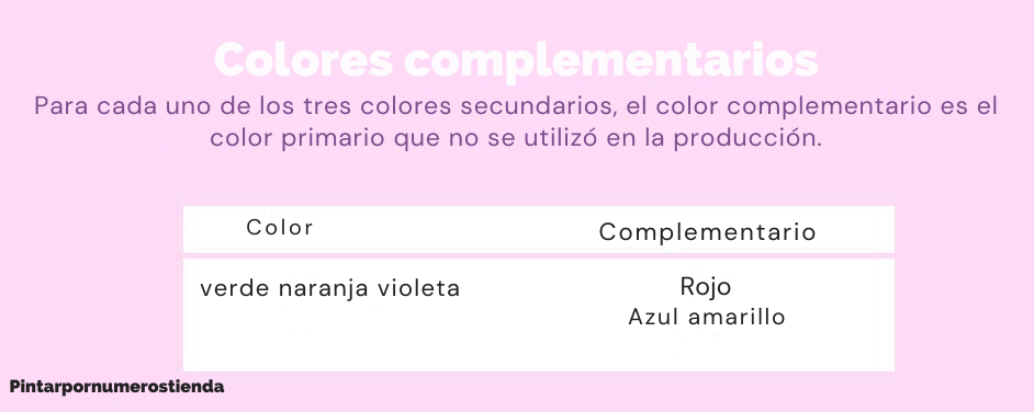 En cuanto a los colores secundarios, las siguientes combinaciones dan lugar a colores complementarios: