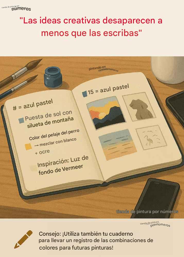 La inspiración puede llegar en cualquier momento. Por eso, ten a mano un cuaderno de bocetos o notas donde registres combinaciones de colores, ideas de composición o planes de proyectos. Así construyes paso a paso una biblioteca personal llena de ideas creativas.