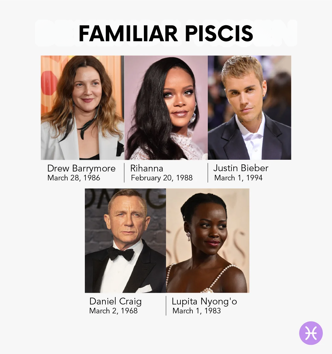 Las personas con fecha del signo Piscis suelen tener una naturaleza suave, intuitiva y soñadora. Ya sea que tu cumpleaños sea el 26 de febrero signo, 9 de marzo signo, 10 de marzo signo o 14 de marzo signo: compartes las características distintivas de este signo de agua.