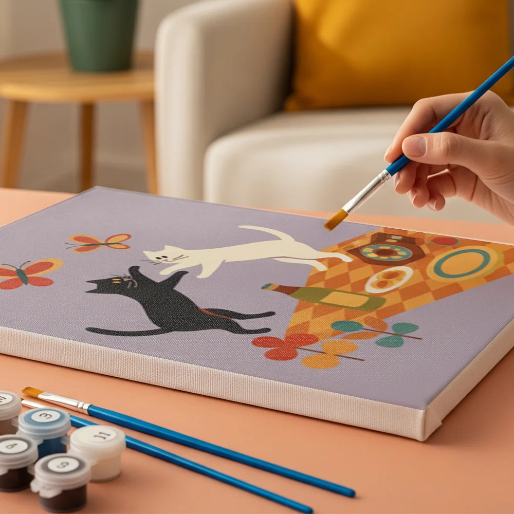 Con marco: El lienzo ya está tensado sobre un marco de madera y pre-montado, listo para colgar. Sin marco: Este es un lienzo estándar de Mini Pinturas por Números que aún no puede colgarse.