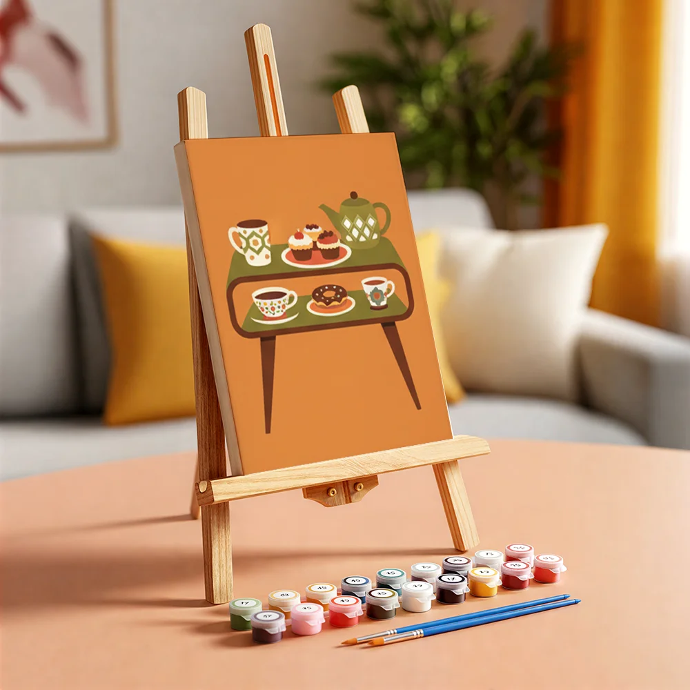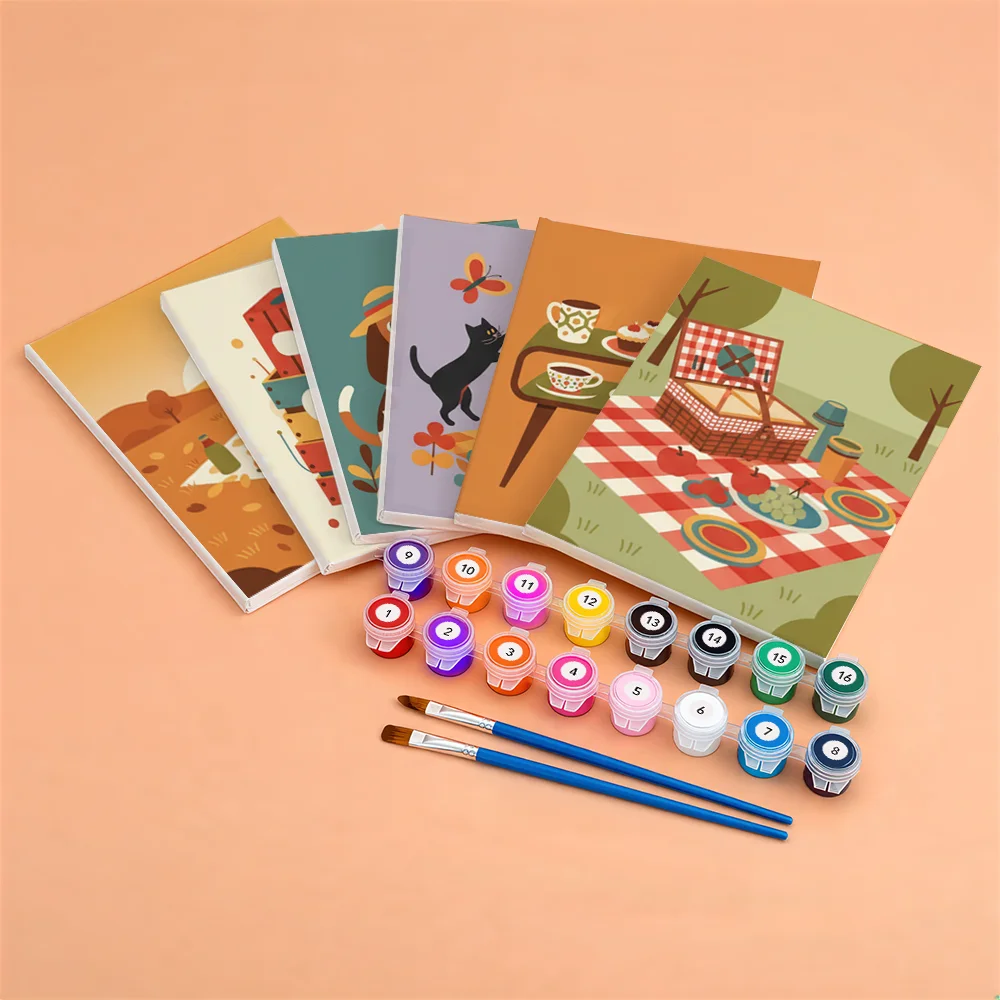 Pintar por números – 6 mini pinturas | Ambiente retro de picnic