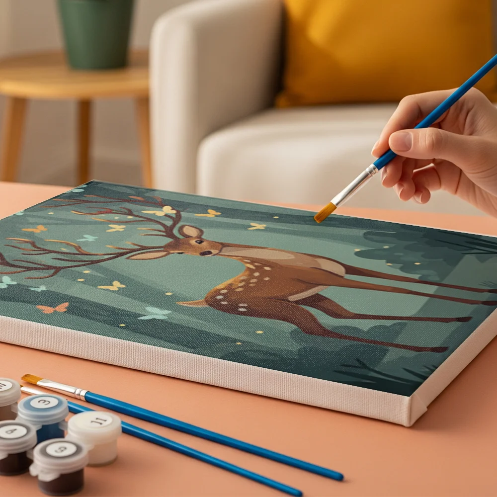 Pintar por números – 6 mini pinturas | Amigos del bosque iluminado por la luna