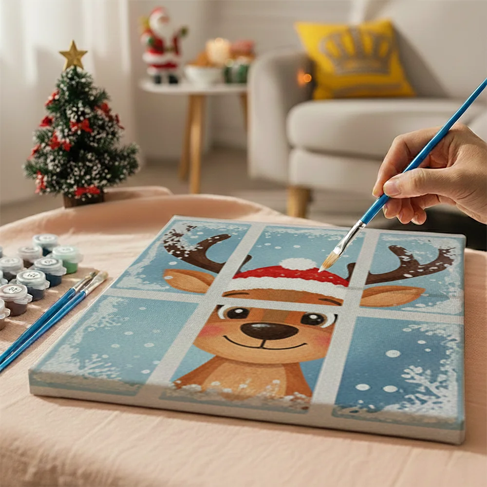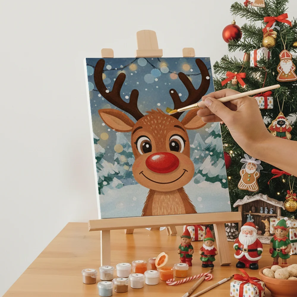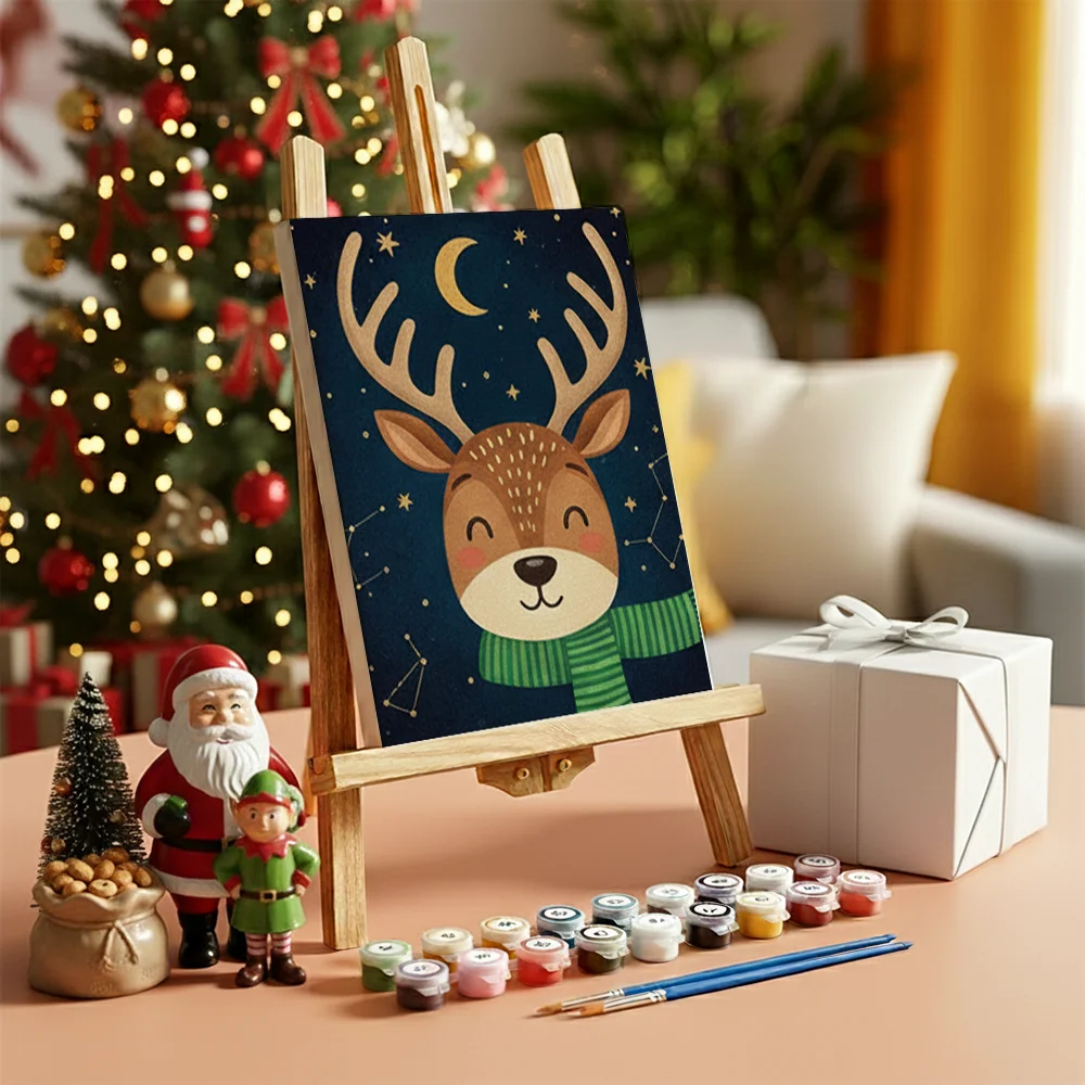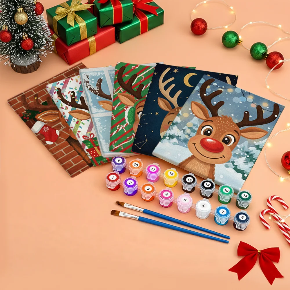 Pintar por números – 6 mini pinturas | Bonita cara de reno