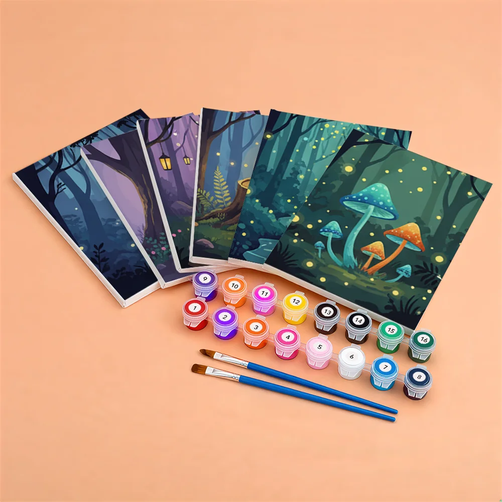 Pintar por números – 6 mini pinturas | Brillo de hada del bosque
