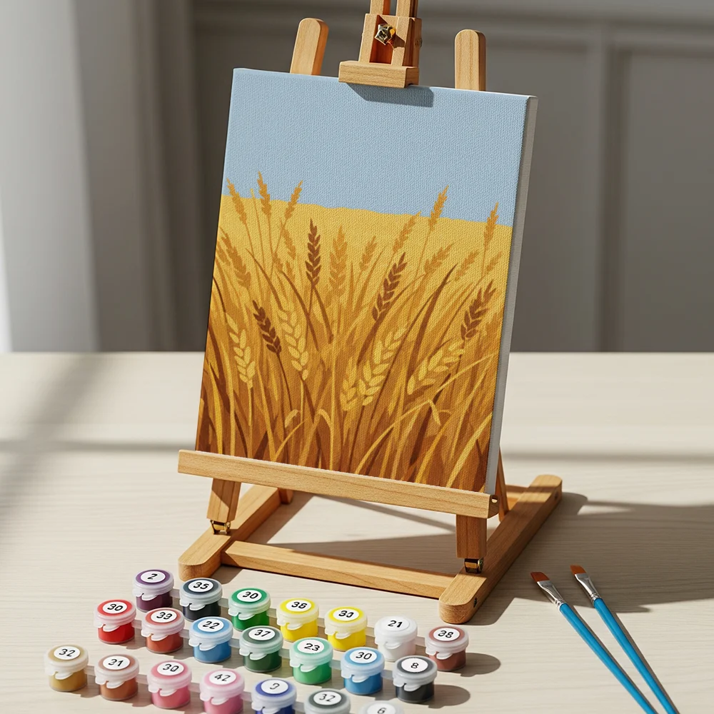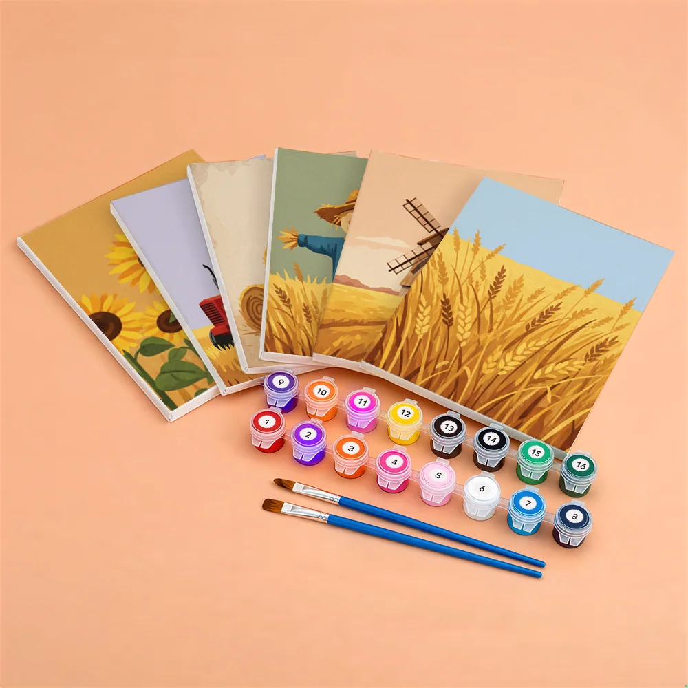 Pintar por números – 6 mini pinturas | Campos de cosecha dorados