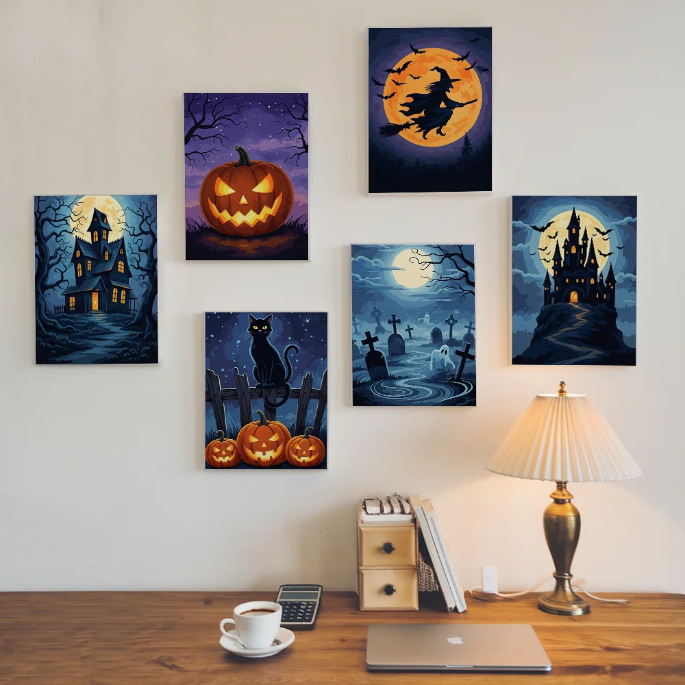 Pintar por números – 6 mini pinturas | Colección Noches Espeluznantes