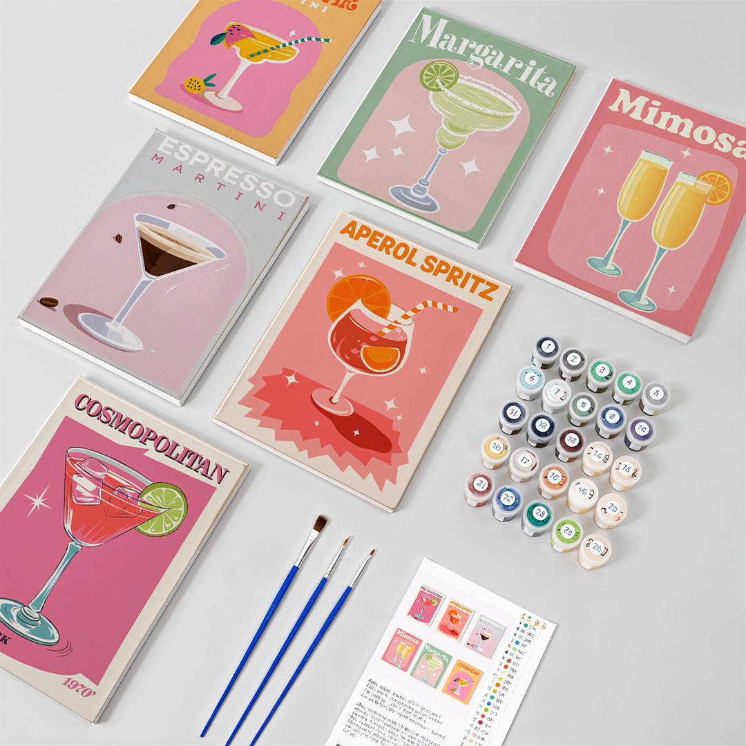 Pintar por números – 6 mini pinturas | Conjunto de cócteles