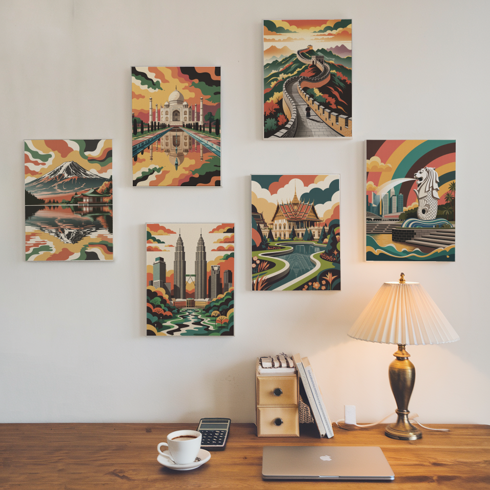 ¡Dale un toque de estilo a tu hogar con nuestro set de 6 mini pinturas | Conjunto de Maravillas del mundo con estilo! Este colorido set incluye 6 pinturas vibrantes, cada una con un diseño único. Deja volar tu creatividad y disfruta de un viaje artístico lleno de diversión. El Set Mini Pinturas por Números es perfecto como regalo o como colección decorativa y sin duda añadirá un ambiente alegre e inspirador a cualquier espacio. Transforma tu hogar con estos diseños refrescantes.