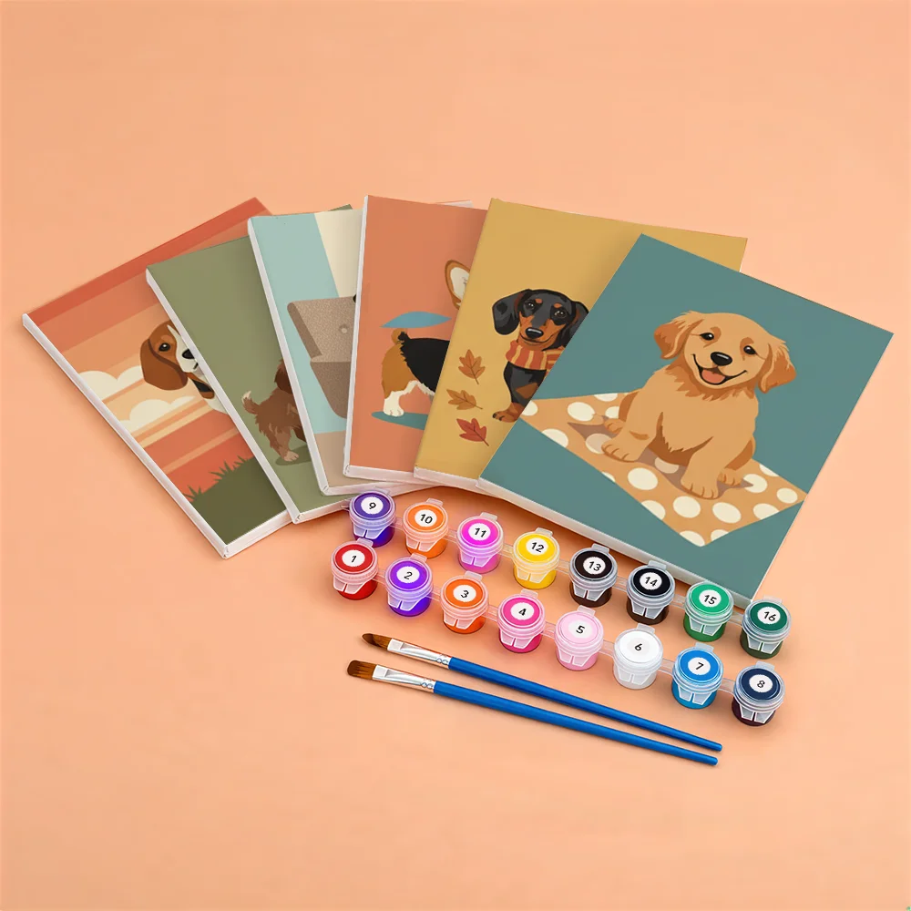 Pintar por números – 6 mini pinturas | Días retro de perros