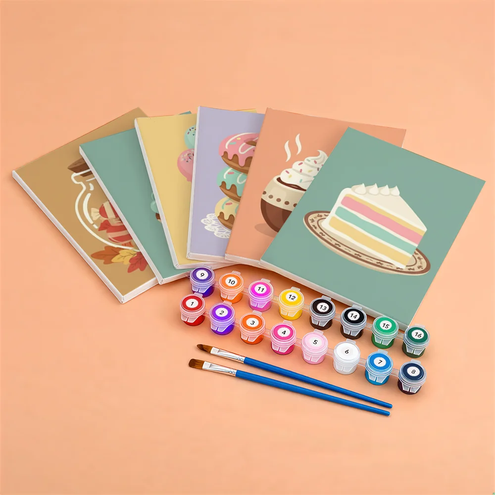 Pintar por números – 6 mini pinturas | Dulces retro