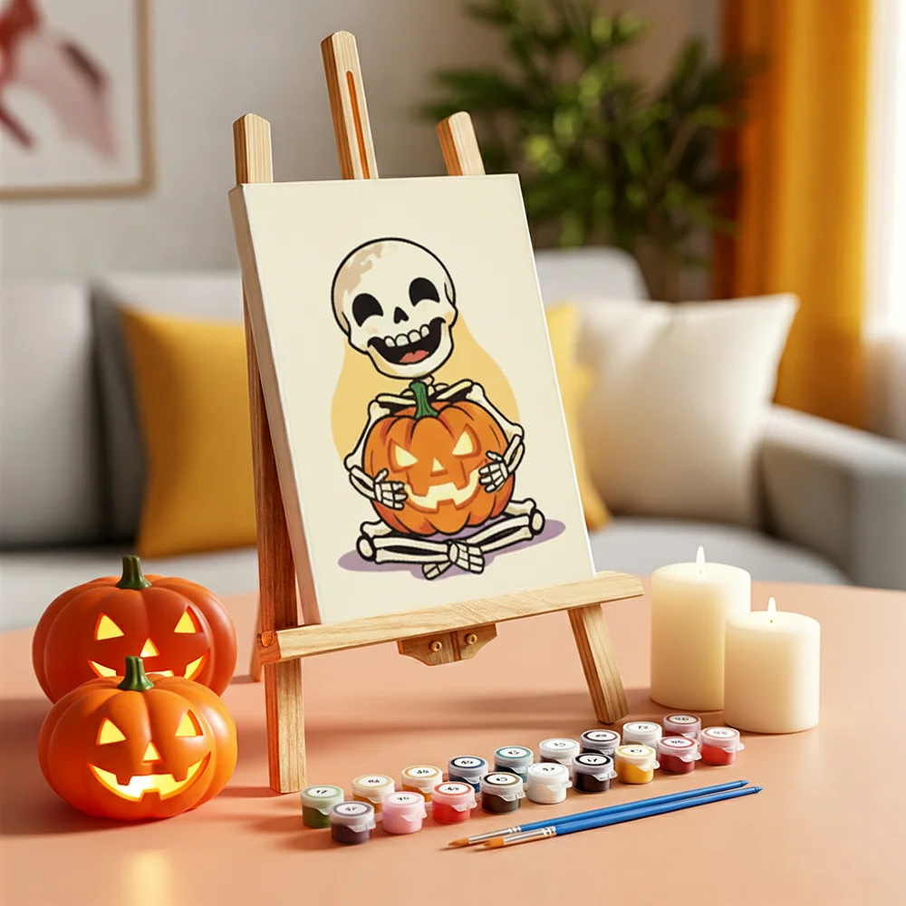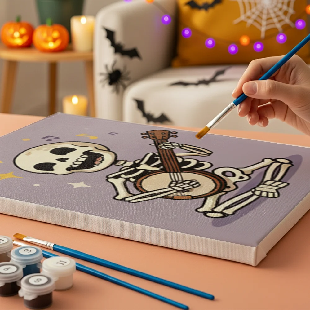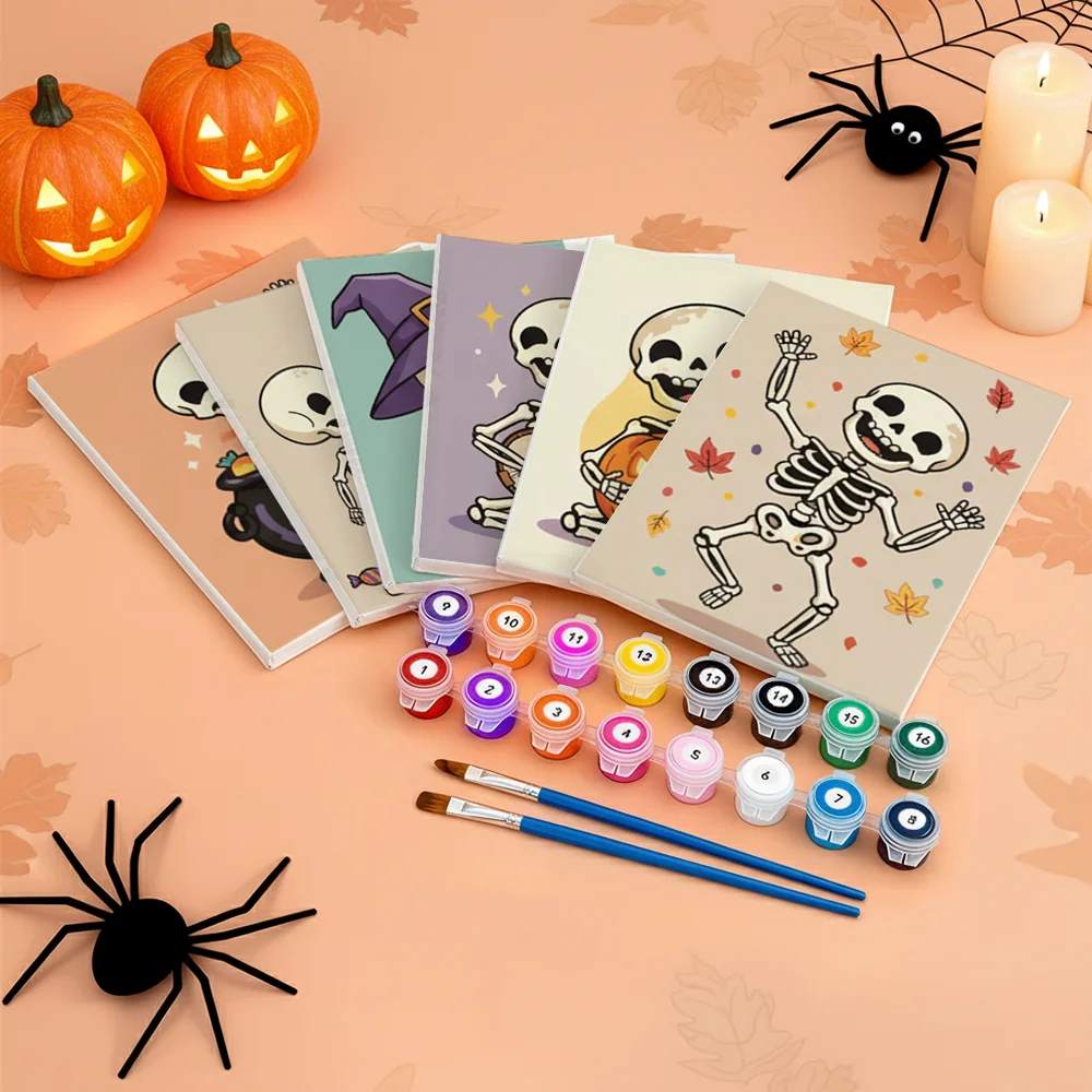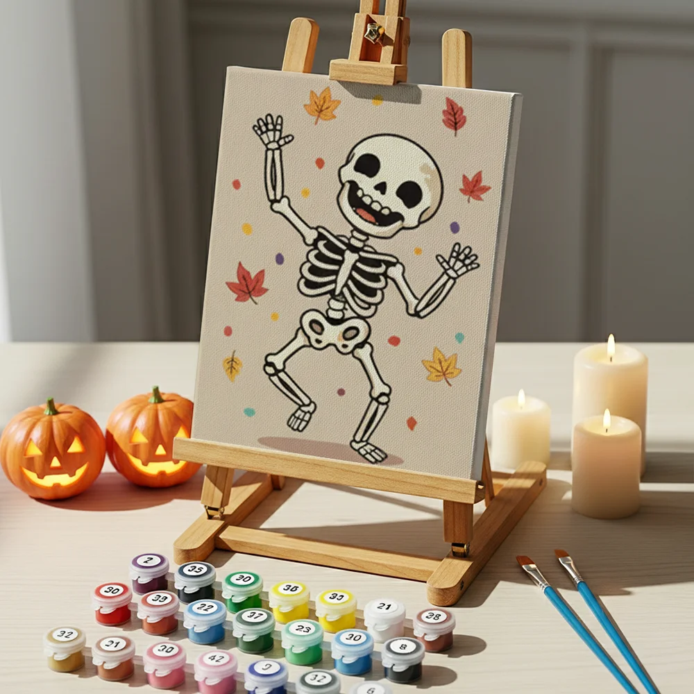 Pintar por números – 6 mini pinturas | Esqueleto feliz