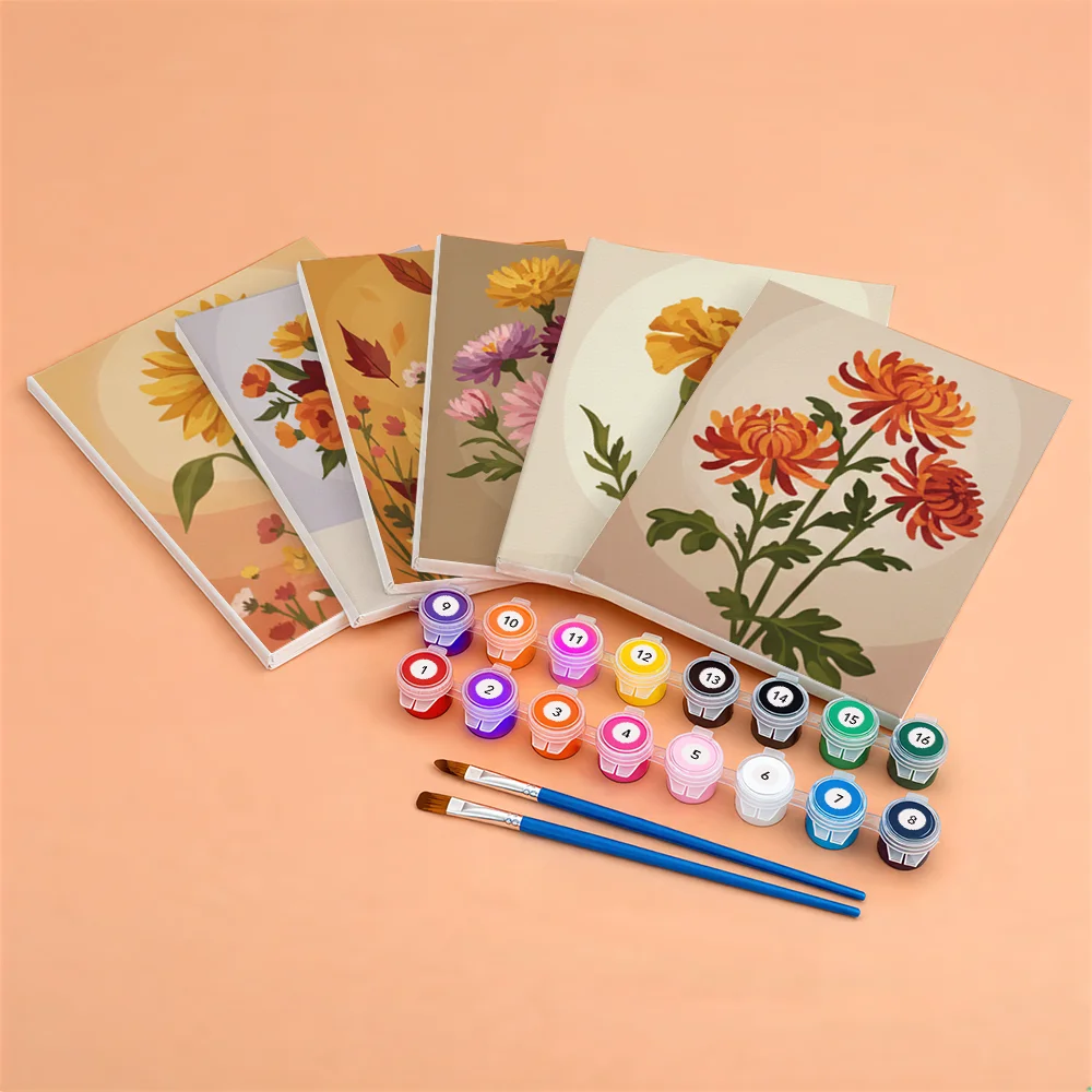 Pintar por números – 6 mini pinturas | Flor de otoño