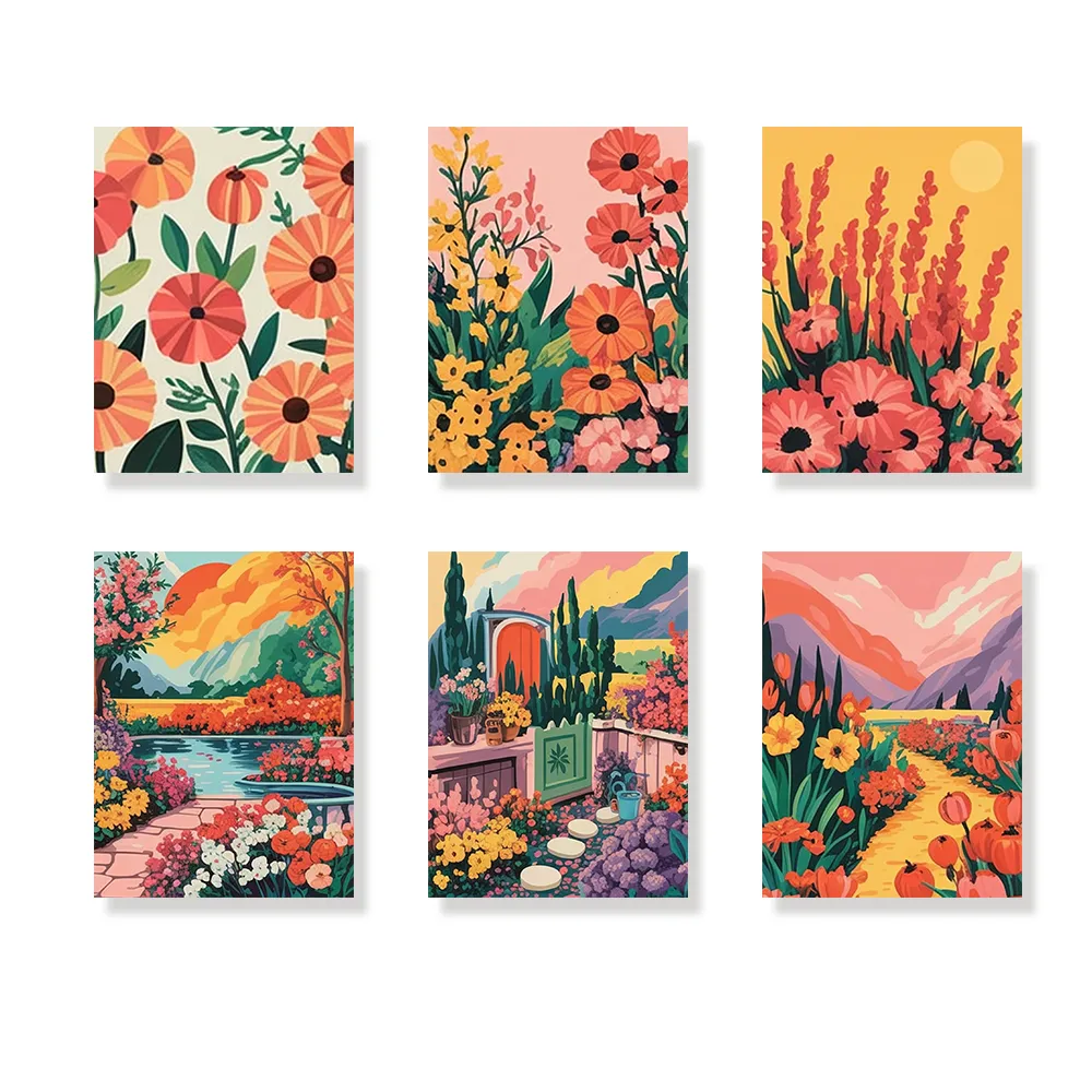 Pintar por números – 6 mini pinturas | Jardín Snap