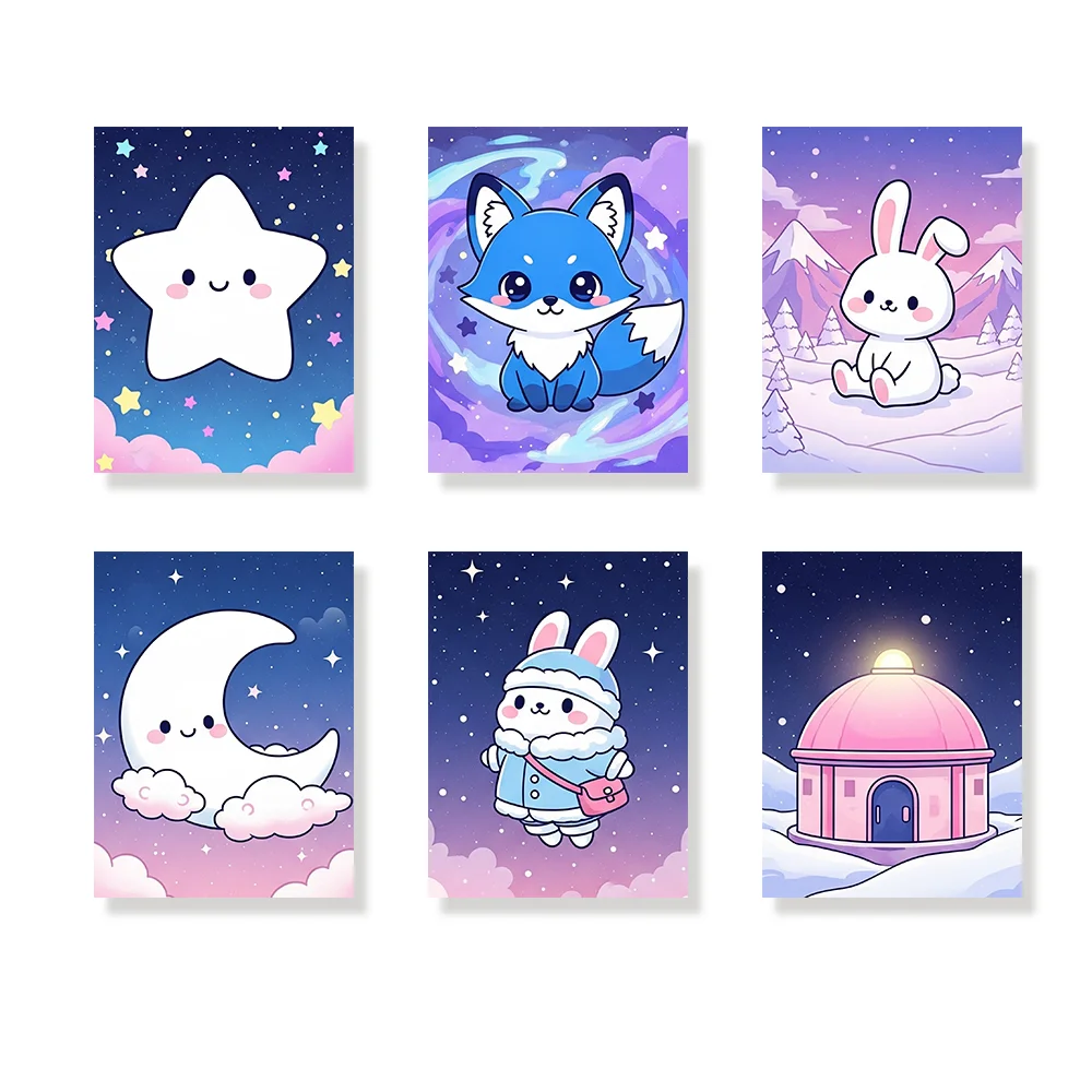 ¡Dale un toque de estilo a tu hogar con nuestro set de 6 mini pinturas | Los enamorados de Cloudland! Este colorido set incluye 6 pinturas vibrantes, cada una con un diseño único. Deja volar tu creatividad y disfruta de un viaje artístico lleno de diversión. El Set Mini Pinturas por Números es perfecto como regalo o como colección decorativa y sin duda añadirá un ambiente alegre e inspirador a cualquier espacio. Transforma tu hogar con estos diseños refrescantes.