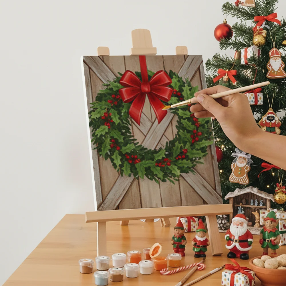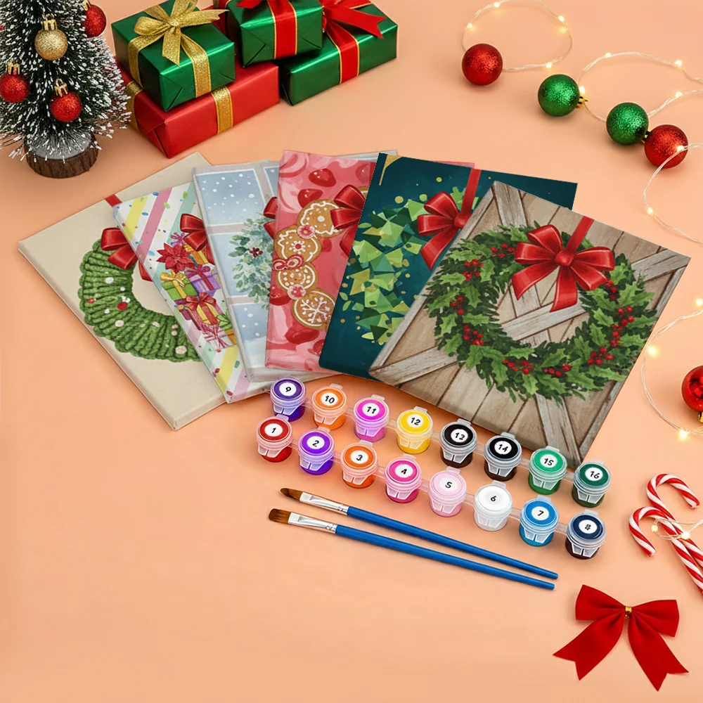Pintar por números – 6 mini pinturas | Mini corona con lazo rojo