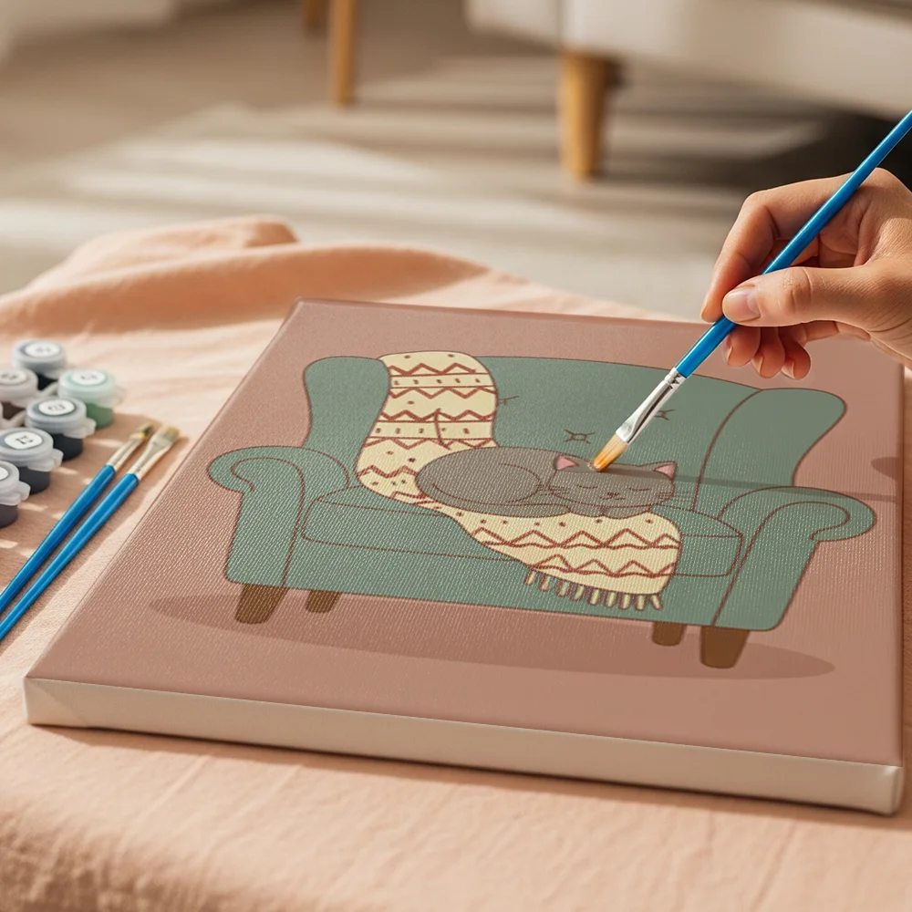 Con marco: El lienzo ya está tensado sobre un marco de madera y pre-montado, listo para colgar. Sin marco: Este es un lienzo estándar de Mini Pinturas por Números que aún no puede colgarse.