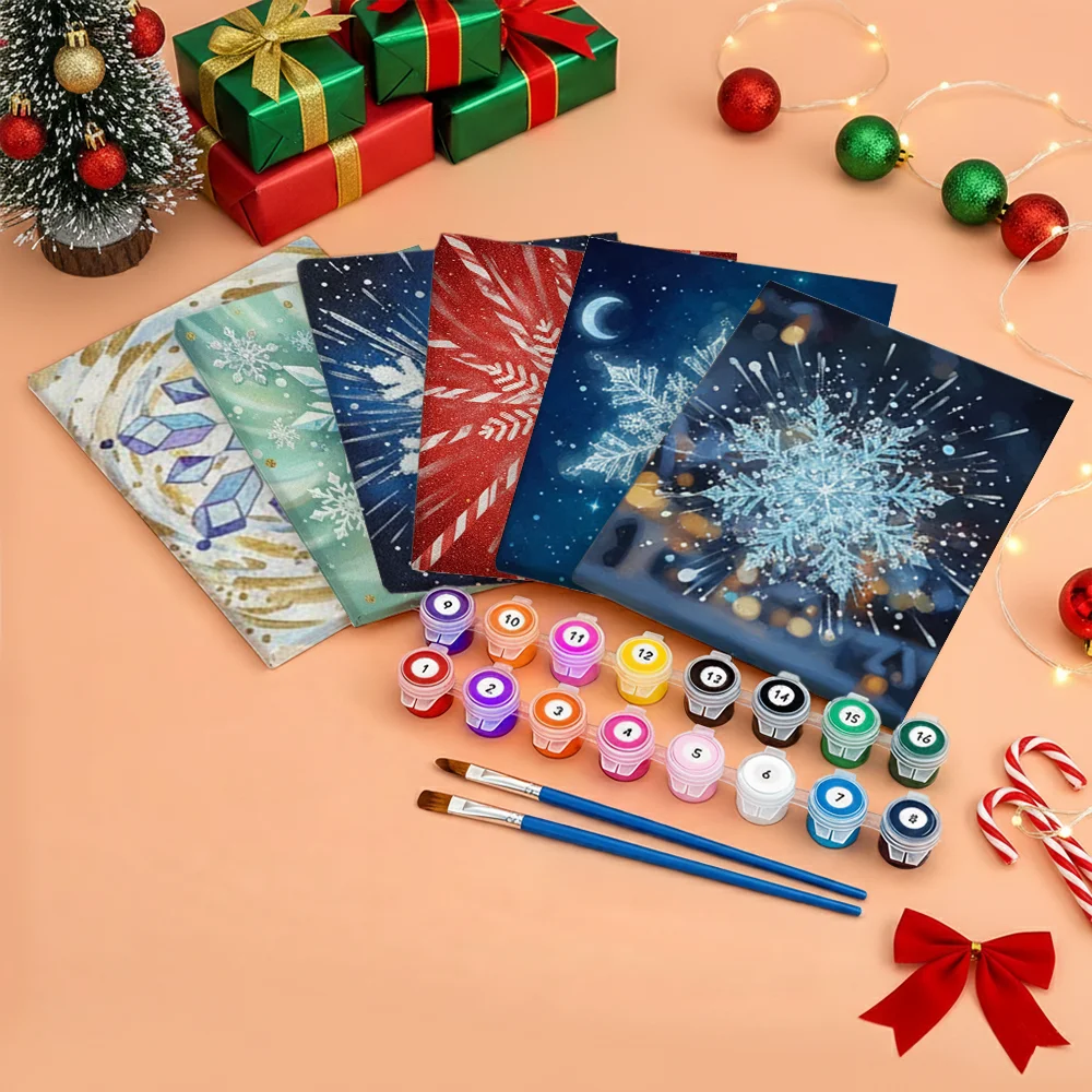 Pintar por números – 6 mini pinturas | Pequeño estallido de copos de nieve