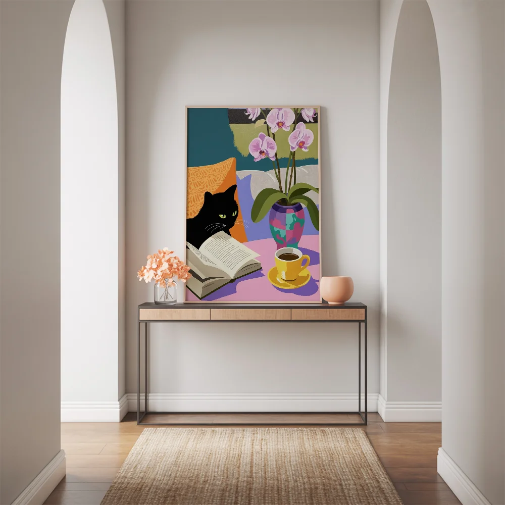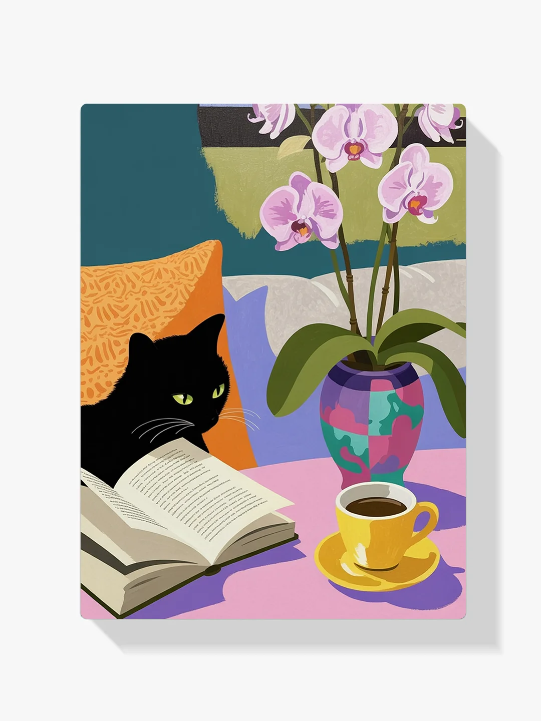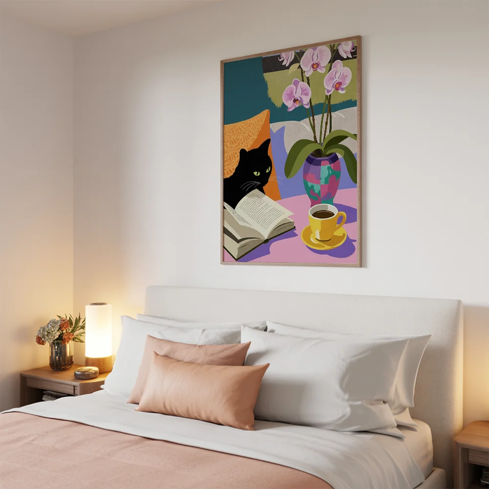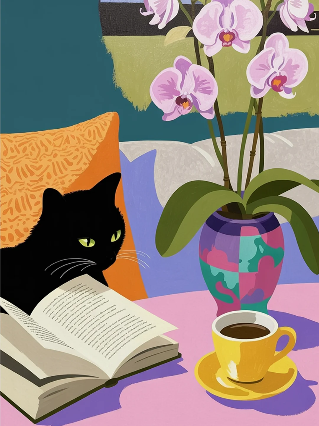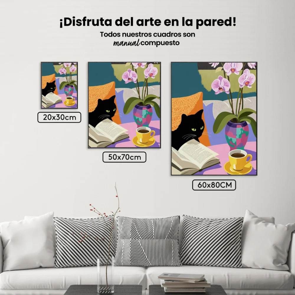 Pintar por Números – Acogedor gato negro leyendo un libro