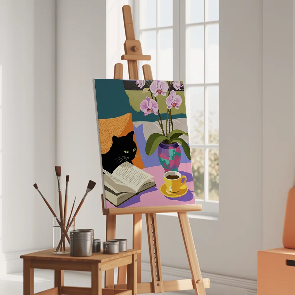 - Pintar por Números – Acogedor gato negro leyendo un libro