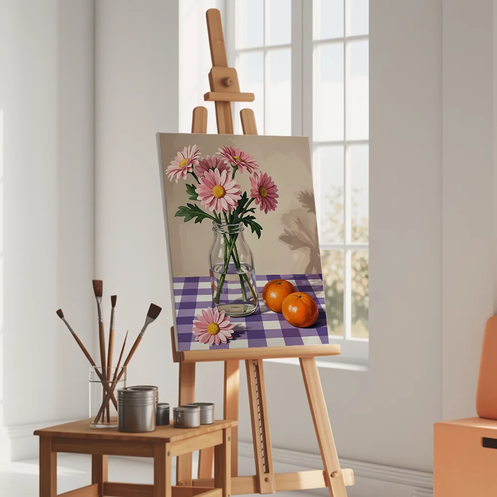 Pintar por Números – Acogedor jarrón con flores y naranjas