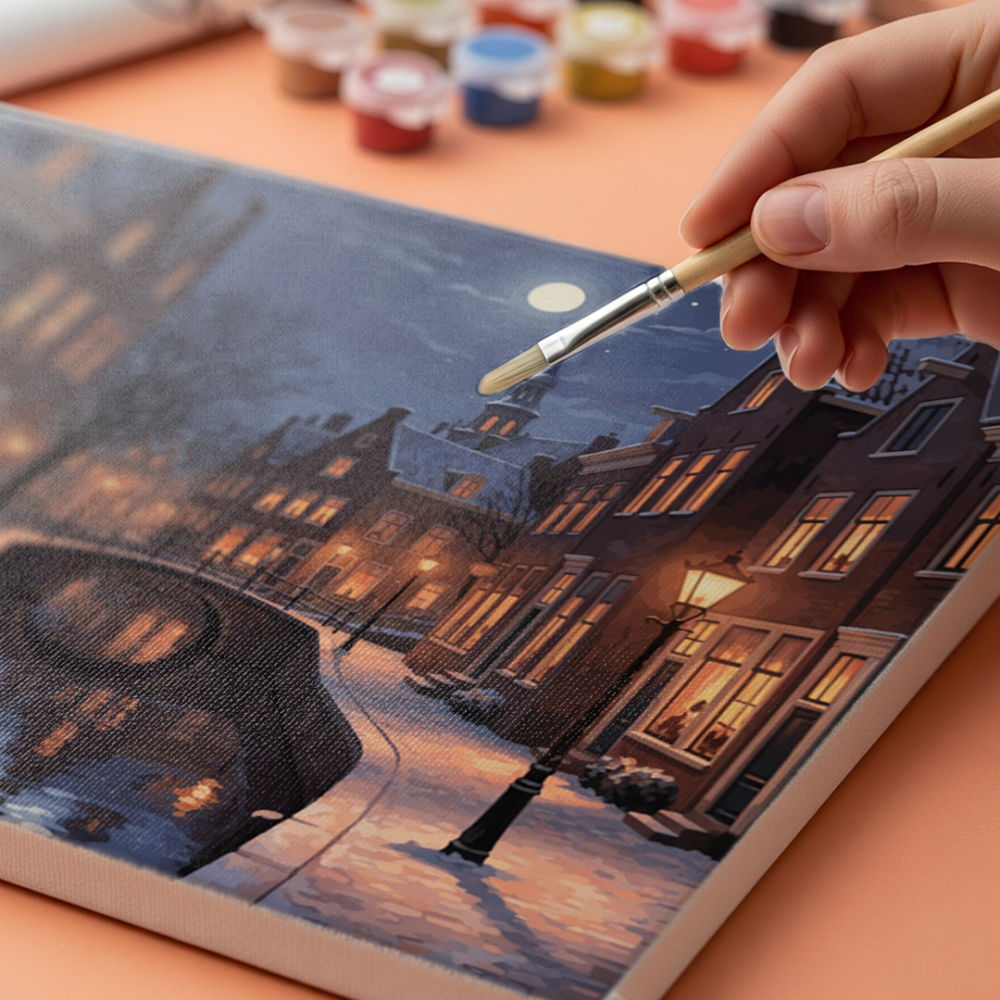 ¿Busca una salida para toda su creatividad, una actividad divertida para toda la familia? Esto es posible con el brillante, completo y profesional paquete de Pintar por Números – Agradable velada en Haarlem. Para que puedas crear los más bellos cuadros en casa. El lienzo transparente de alta calidad le permite crear una obra de arte impresionante en poco tiempo. Deje que su interior brille con sus propias creaciones. Pintar por números es el pasatiempo perfecto para ti solo o para toda la familia.