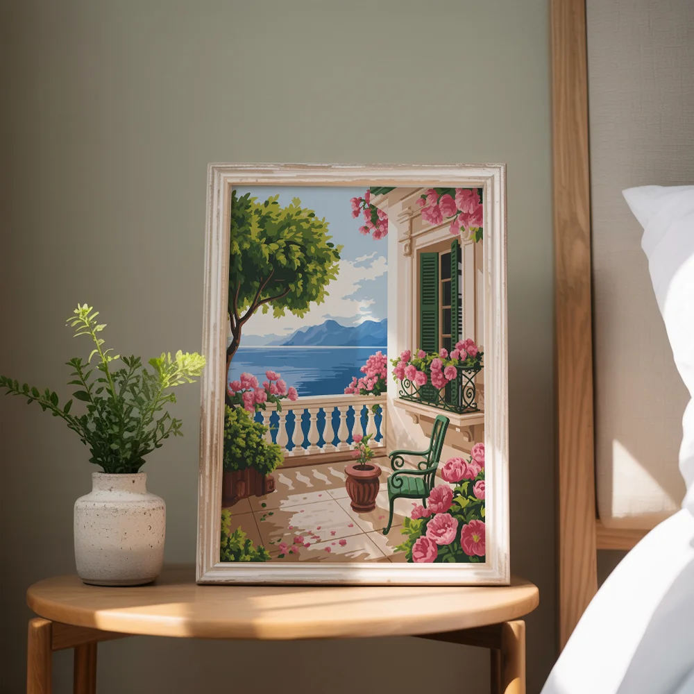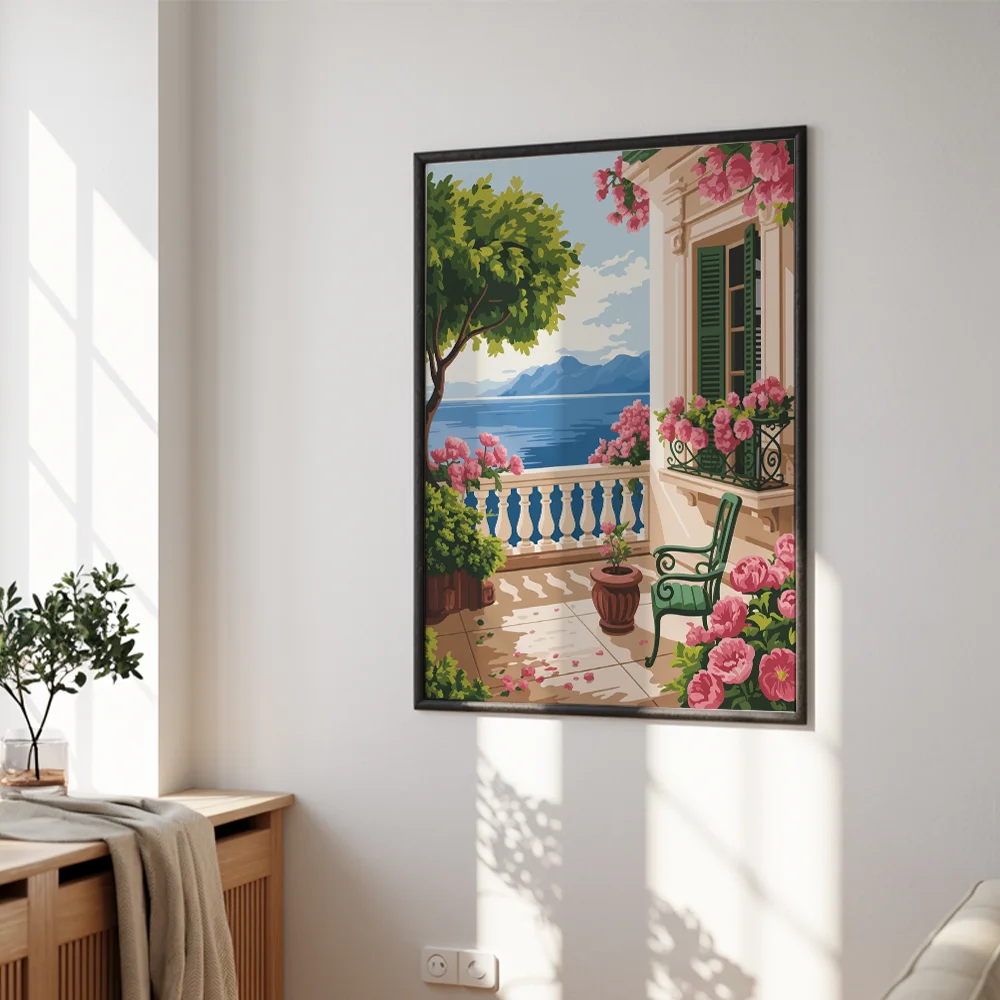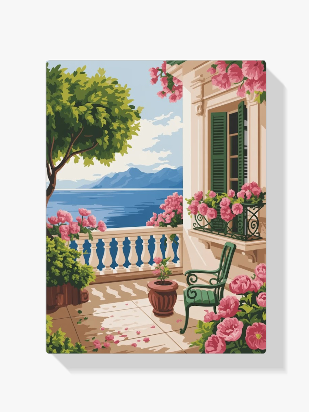 ¿Busca una salida para toda su creatividad, una actividad divertida para toda la familia? Esto es posible con el brillante, completo y profesional paquete de Pintar por Números – Balcón floreciente. Para que puedas crear los más bellos cuadros en casa. El lienzo transparente de alta calidad le permite crear una obra de arte impresionante en poco tiempo. Deje que su interior brille con sus propias creaciones. Pintar por números es el pasatiempo perfecto para ti solo o para toda la familia.
