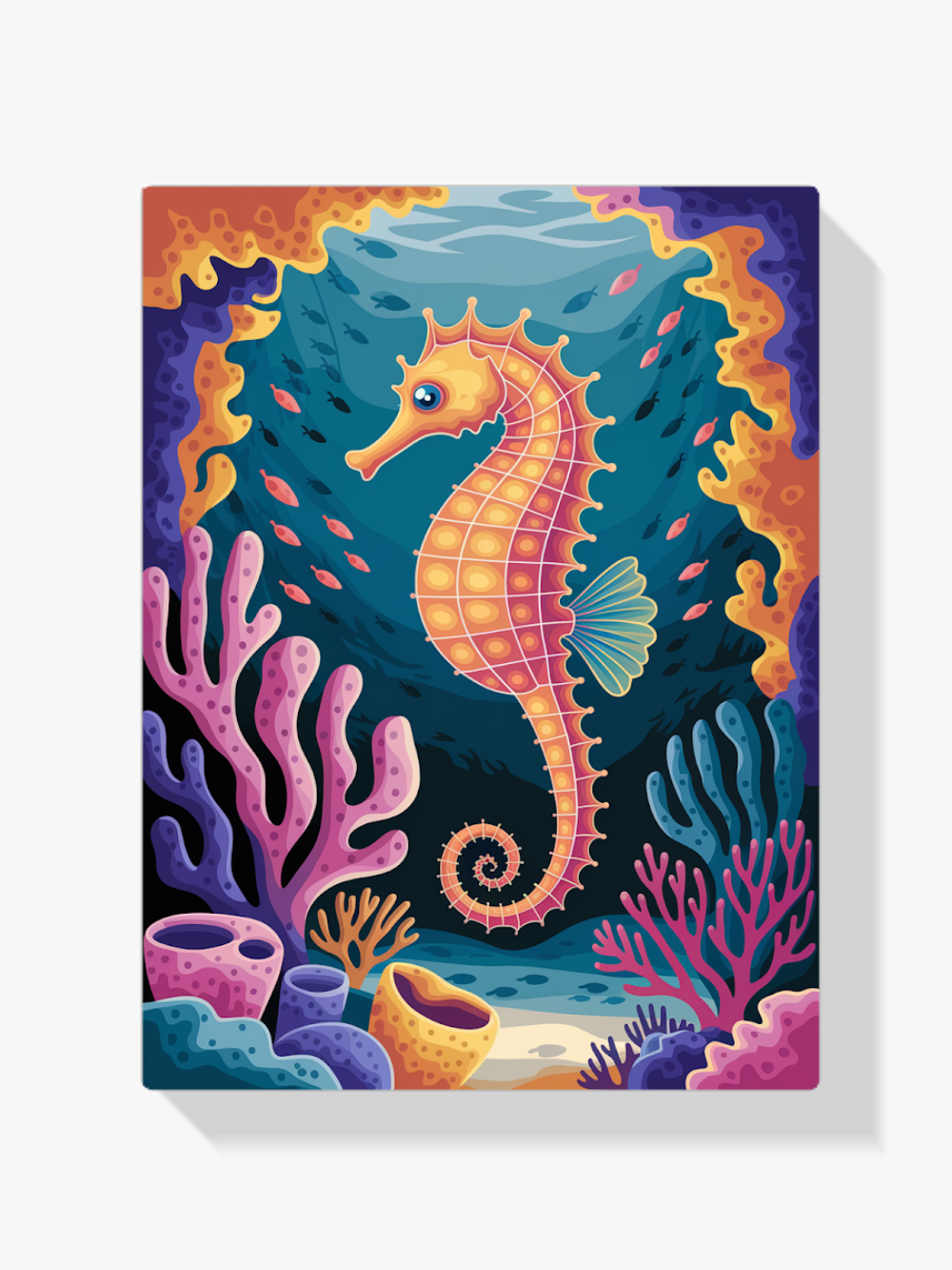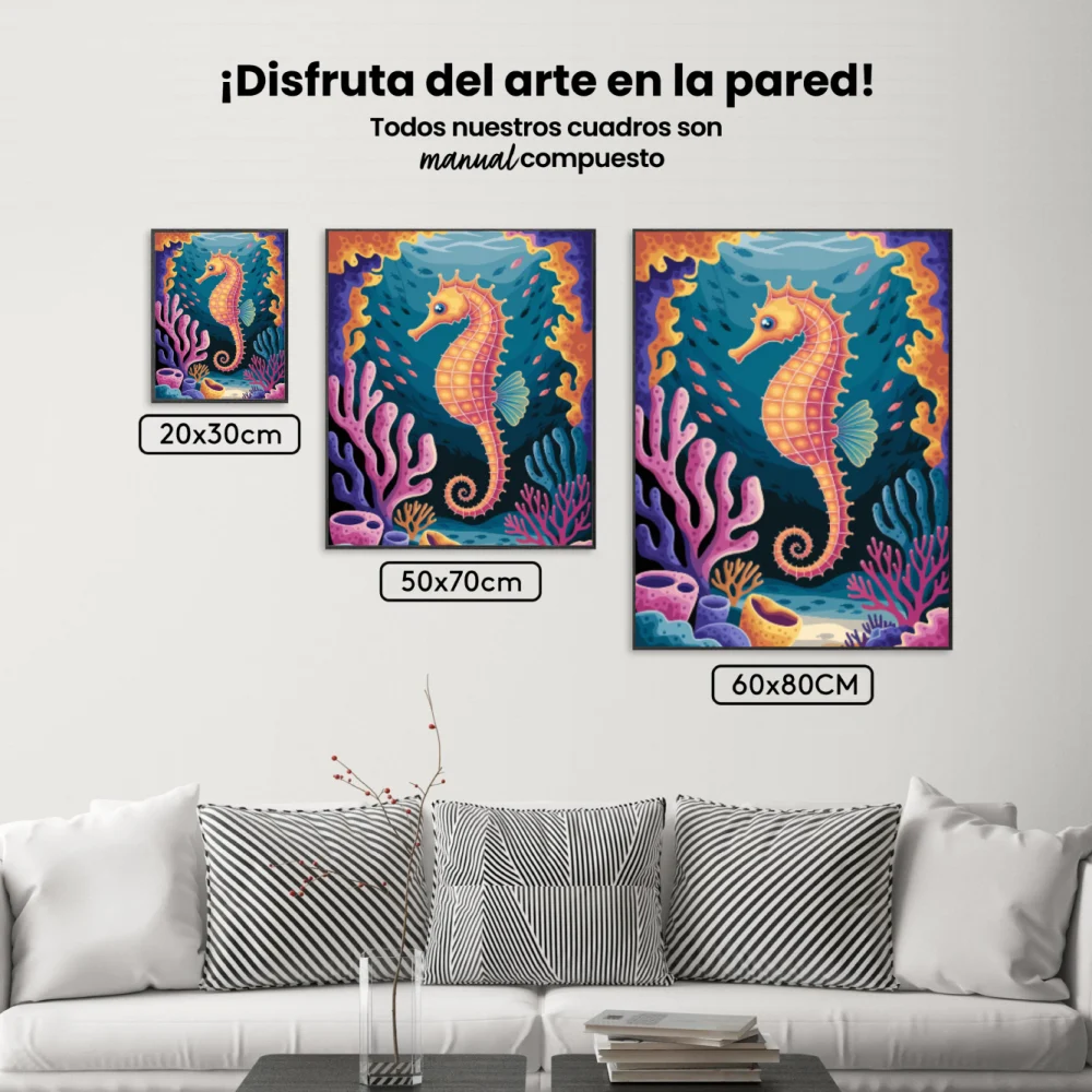 Pintar por Números – Caballito de mar en un colorido arrecife de coral