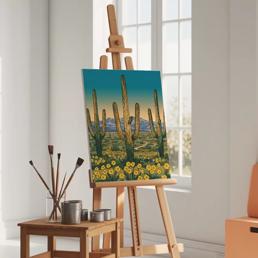 ¿Busca una salida para toda su creatividad, una actividad divertida para toda la familia? Esto es posible con el brillante, completo y profesional paquete de Pintar por Números – Cactus del desierto del suroeste. Para que puedas crear los más bellos cuadros en casa. El lienzo transparente de alta calidad le permite crear una obra de arte impresionante en poco tiempo. Deje que su interior brille con sus propias creaciones. Pintar por números es el pasatiempo perfecto para ti solo o para toda la familia.