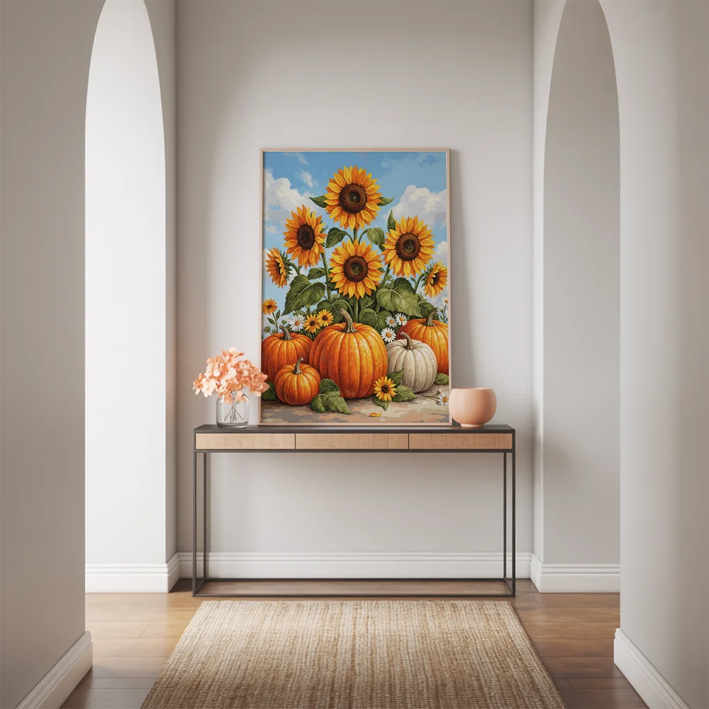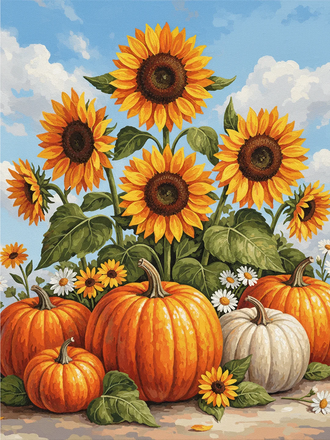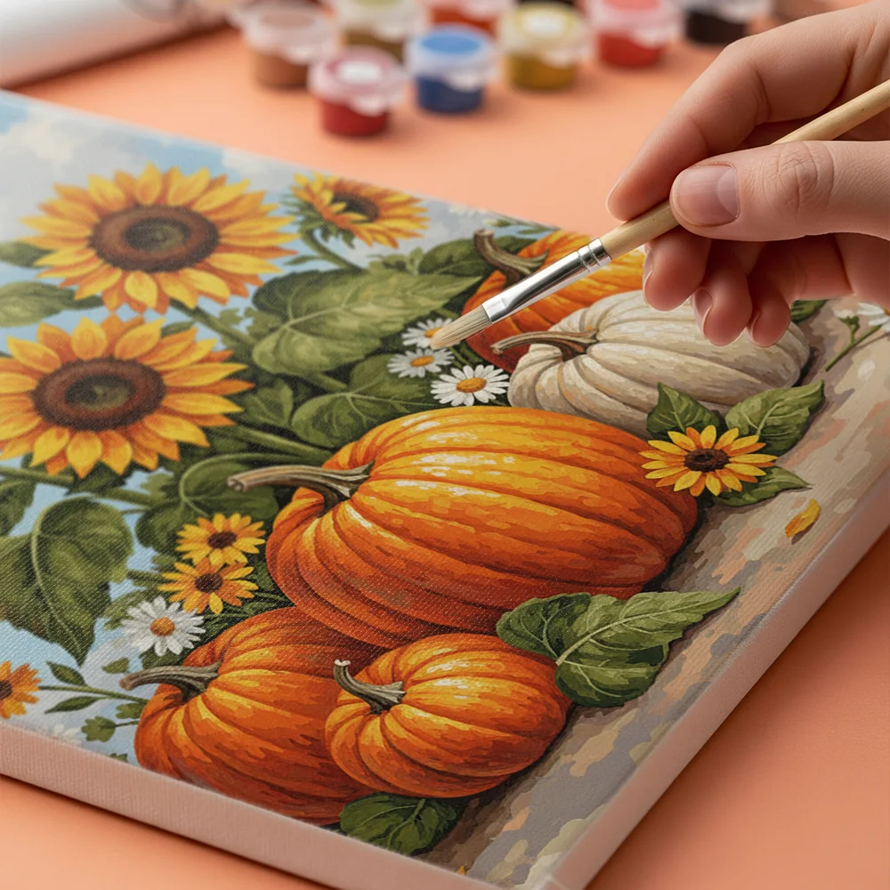 ¿Busca una salida para toda su creatividad, una actividad divertida para toda la familia? Esto es posible con el brillante, completo y profesional paquete de Pintar por Números – Calabaza otoñal Girasol. Para que puedas crear los más bellos cuadros en casa. El lienzo transparente de alta calidad le permite crear una obra de arte impresionante en poco tiempo. Deje que su interior brille con sus propias creaciones. Pintar por números es el pasatiempo perfecto para ti solo o para toda la familia.