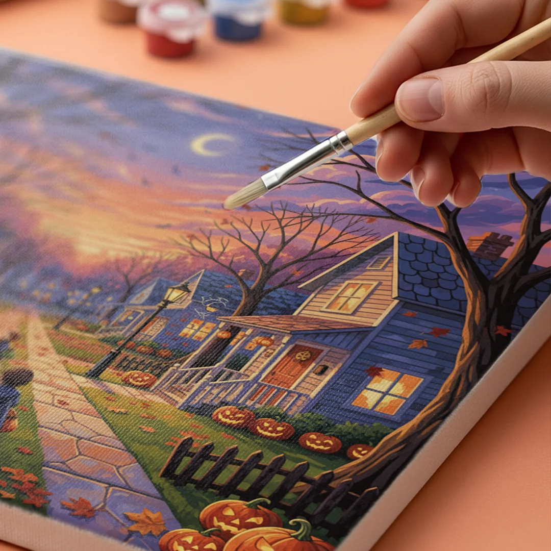 ¿Busca una salida para toda su creatividad, una actividad divertida para toda la familia? Esto es posible con el brillante, completo y profesional paquete de Pintar por Números – Calle del Truco o Traté. Para que puedas crear los más bellos cuadros en casa. El lienzo transparente de alta calidad le permite crear una obra de arte impresionante en poco tiempo. Deje que su interior brille con sus propias creaciones. Pintar por números es el pasatiempo perfecto para ti solo o para toda la familia.