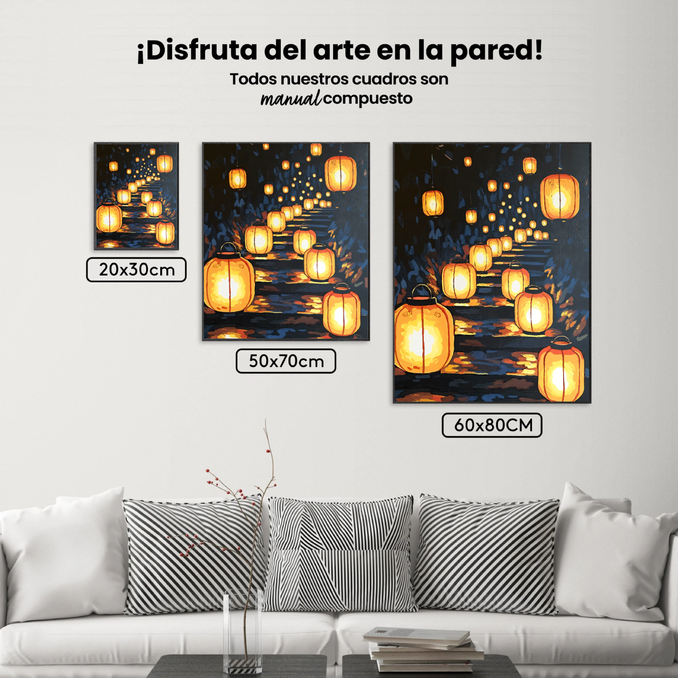 ¿Busca una salida para toda su creatividad, una actividad divertida para toda la familia? Esto es posible con el brillante, completo y profesional paquete de Pintar por Números – Camino con faroles de papel. Para que puedas crear los más bellos cuadros en casa. El lienzo transparente de alta calidad le permite crear una obra de arte impresionante en poco tiempo. Deje que su interior brille con sus propias creaciones. Pintar por números es el pasatiempo perfecto para ti solo o para toda la familia.