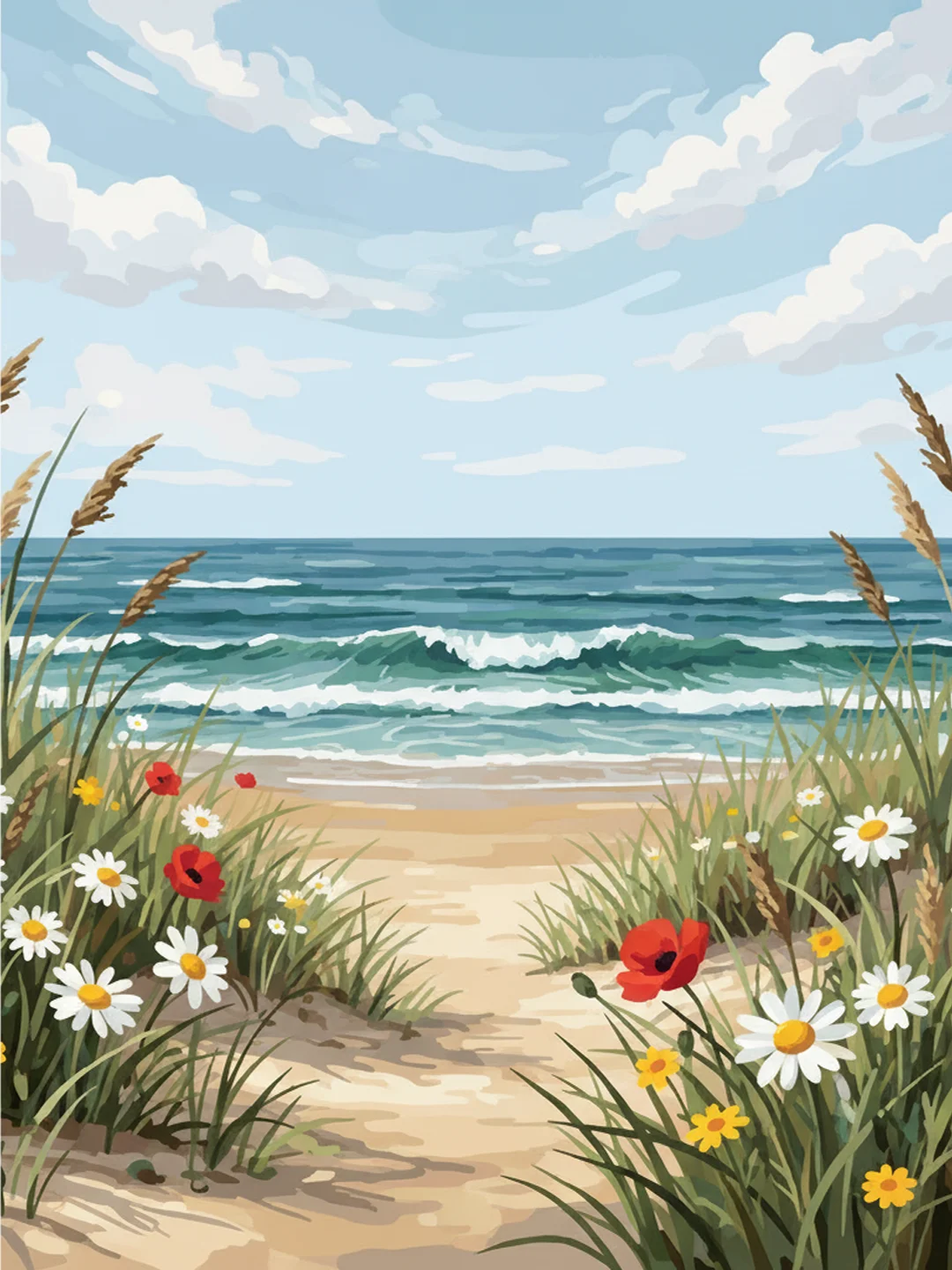 Pintar por Números – Campo de flores silvestres en la playa costera
