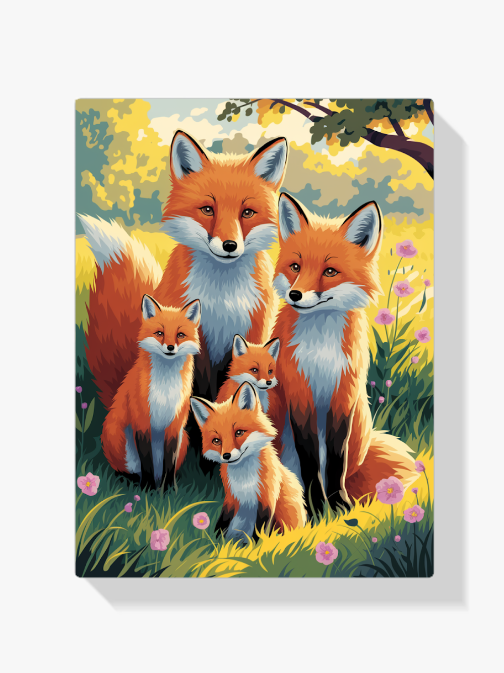 Pintar por Números – Caprichosa familia de zorros en un prado