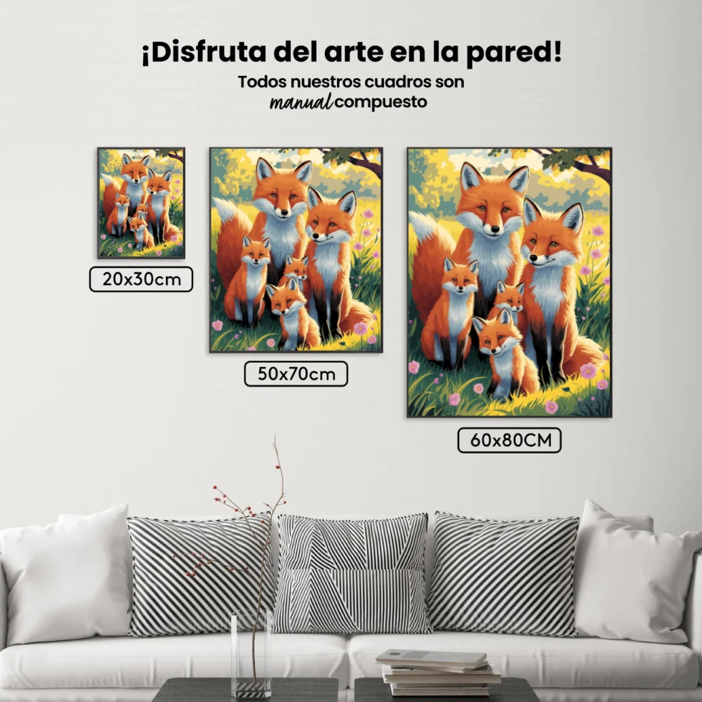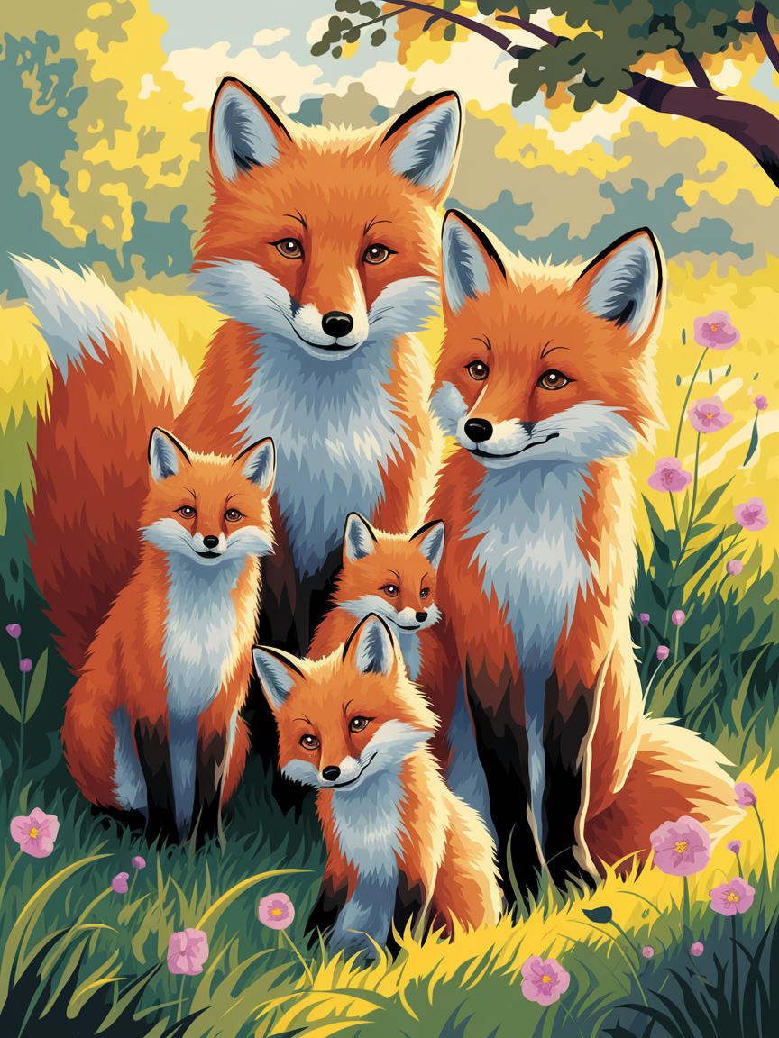- Pintar por Números – Caprichosa familia de zorros en un prado