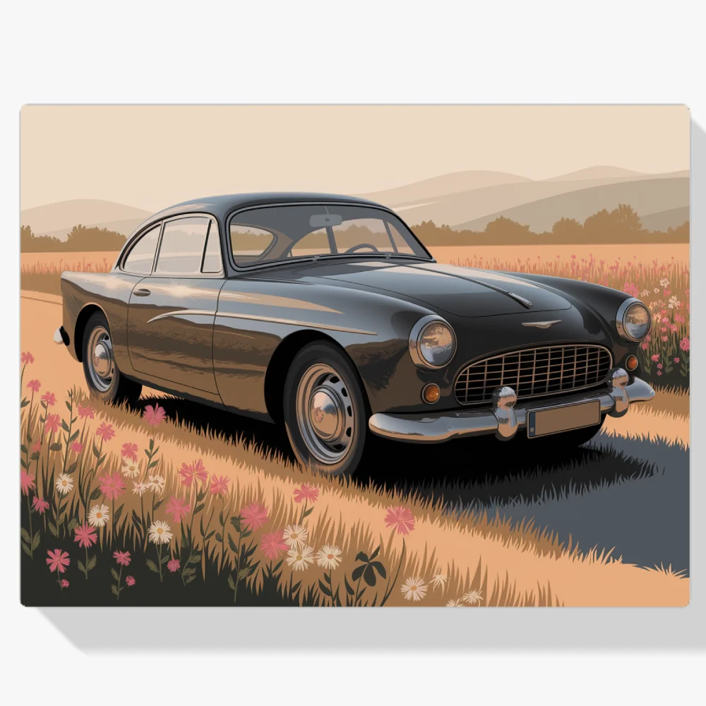 - Pintar por Números – Coche de época en un campo de flores V2
