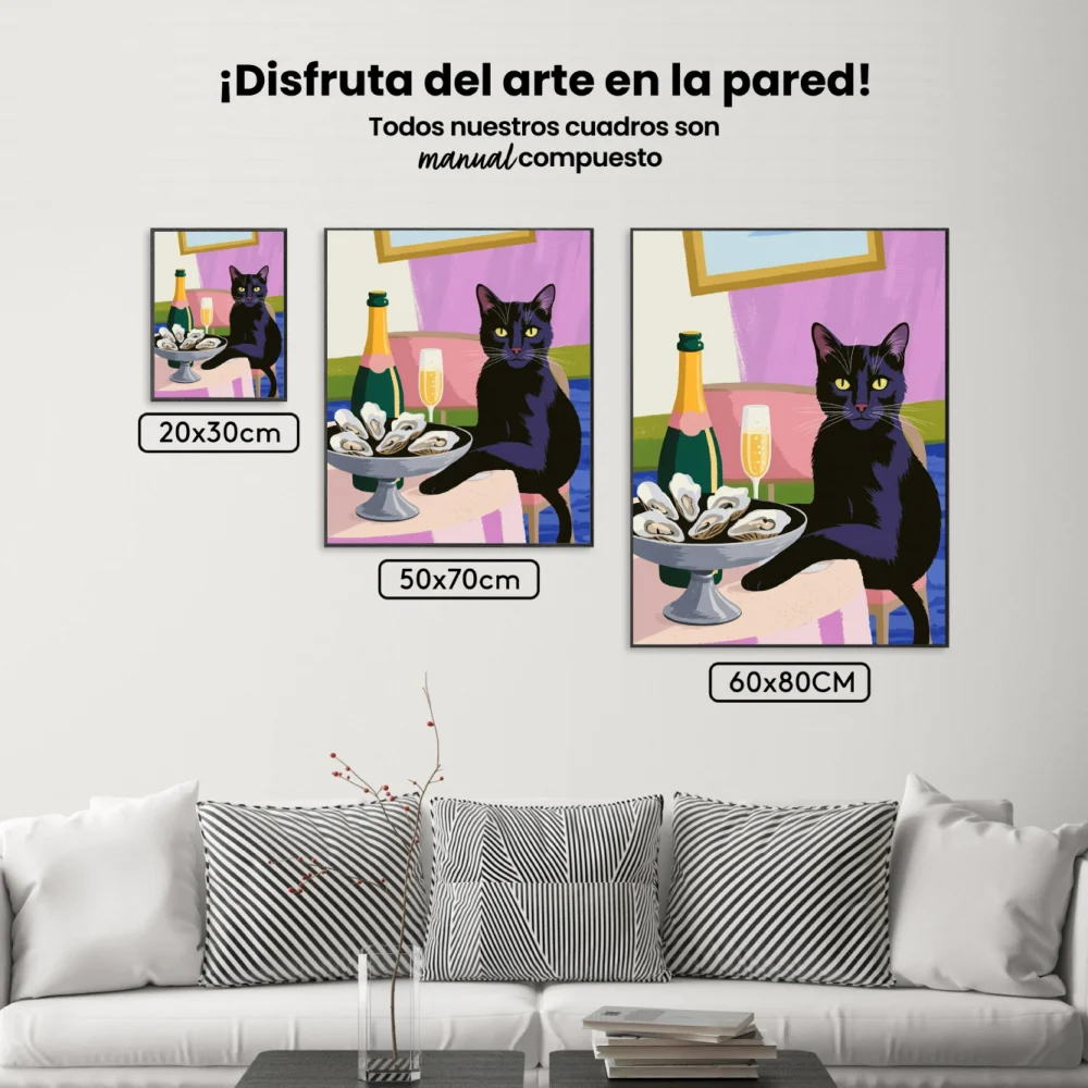 ¿Busca una salida para toda su creatividad, una actividad divertida para toda la familia? Esto es posible con el brillante, completo y profesional paquete de Pintar por Números – Cóctel de ostras con gato. Para que puedas crear los más bellos cuadros en casa. El lienzo transparente de alta calidad le permite crear una obra de arte impresionante en poco tiempo. Deje que su interior brille con sus propias creaciones. Pintar por números es el pasatiempo perfecto para ti solo o para toda la familia.