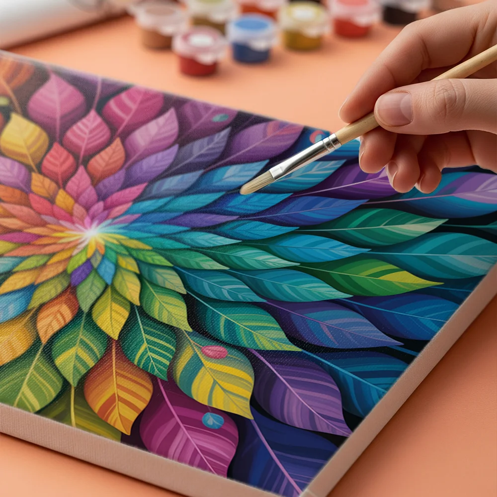- Pintar por Números – Explosión de hojas vibrantes – Mandalas