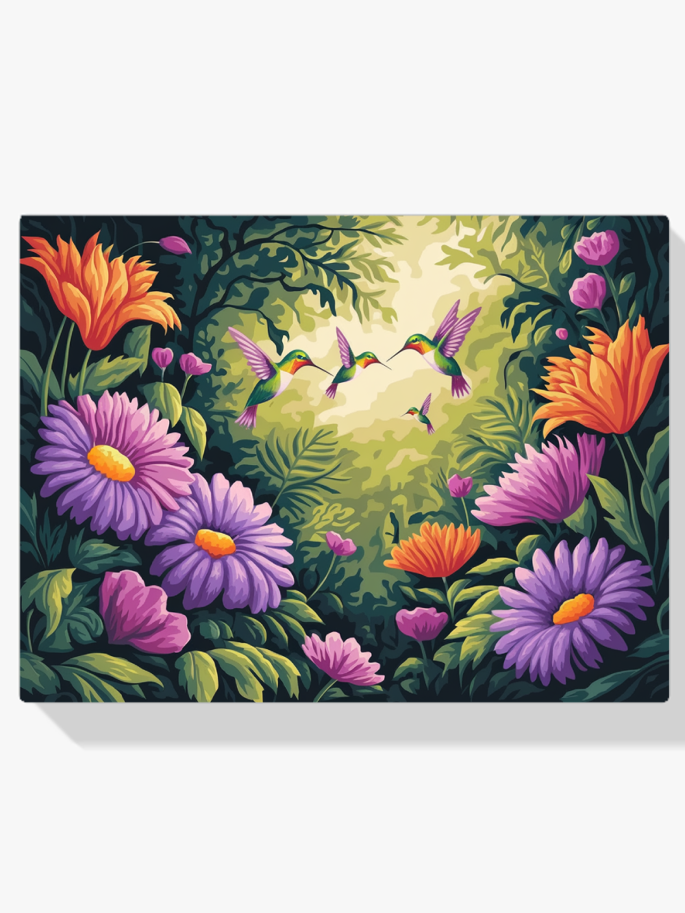 Pintar por Números – Exuberante selva tropical con flores y aves exóticas