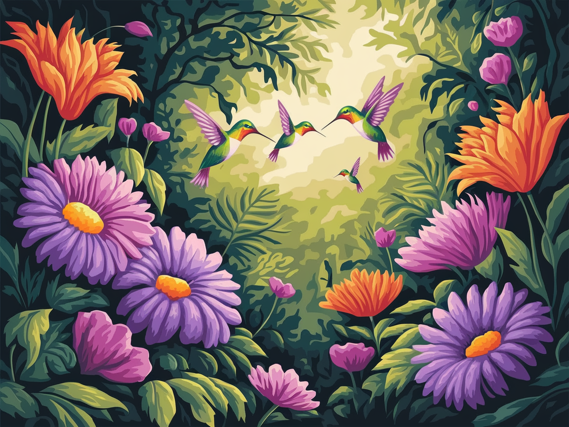 • Pintar por Números – Exuberante selva tropical con flores y aves exóticas