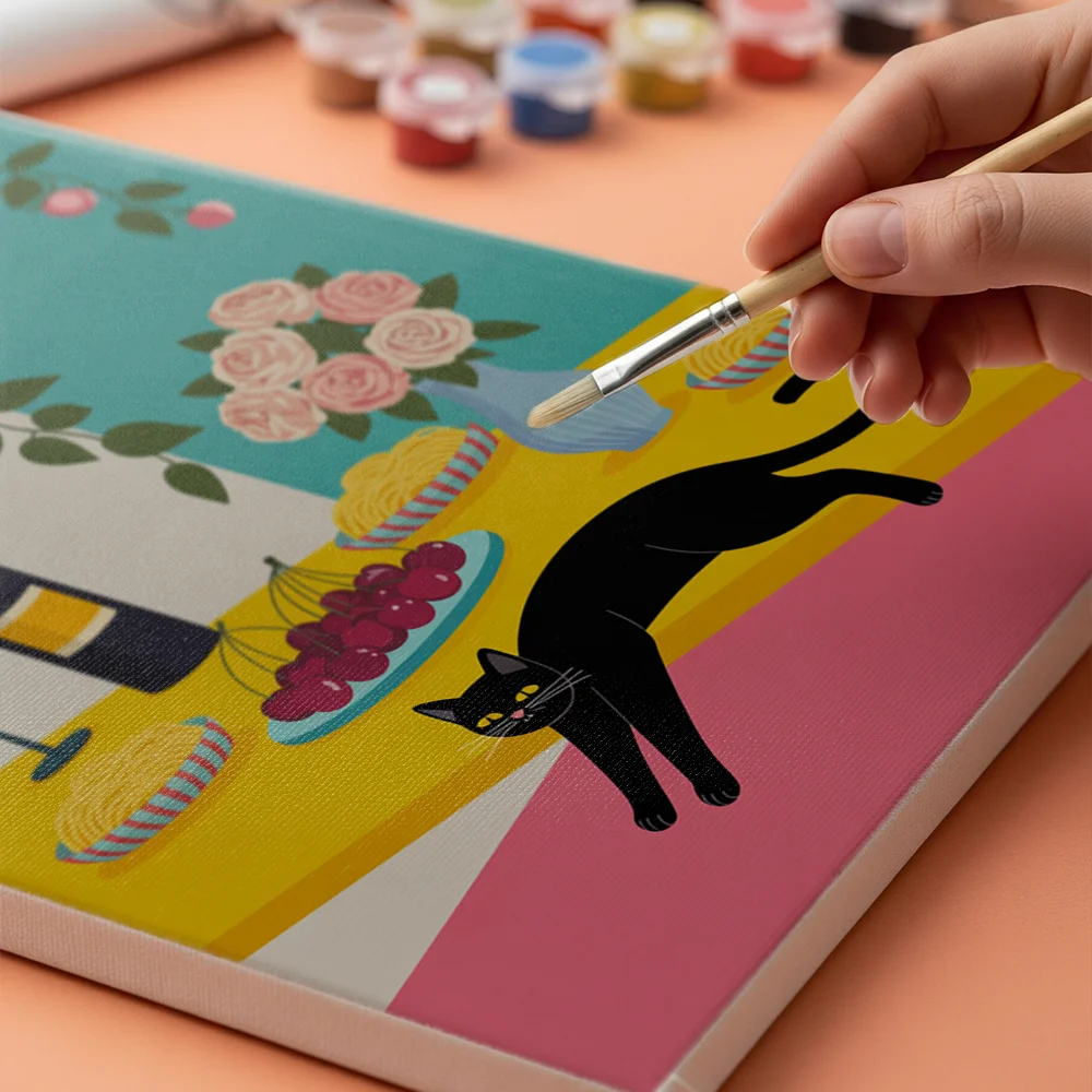 ¿Busca una salida para toda su creatividad, una actividad divertida para toda la familia? Esto es posible con el brillante, completo y profesional paquete de Pintar por Números – Fideos al vino Gato Negro. Para que puedas crear los más bellos cuadros en casa. El lienzo transparente de alta calidad le permite crear una obra de arte impresionante en poco tiempo. Deje que su interior brille con sus propias creaciones. Pintar por números es el pasatiempo perfecto para ti solo o para toda la familia.