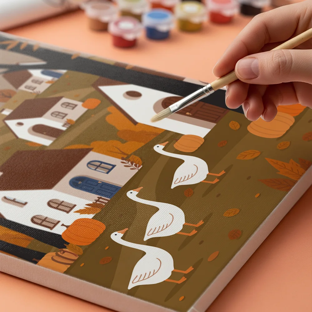 ¿Busca una salida para toda su creatividad, una actividad divertida para toda la familia? Esto es posible con el brillante, completo y profesional paquete de Pintar por Números – Gansos otoñales Calabaza. Para que puedas crear los más bellos cuadros en casa. El lienzo transparente de alta calidad le permite crear una obra de arte impresionante en poco tiempo. Deje que su interior brille con sus propias creaciones. Pintar por números es el pasatiempo perfecto para ti solo o para toda la familia.