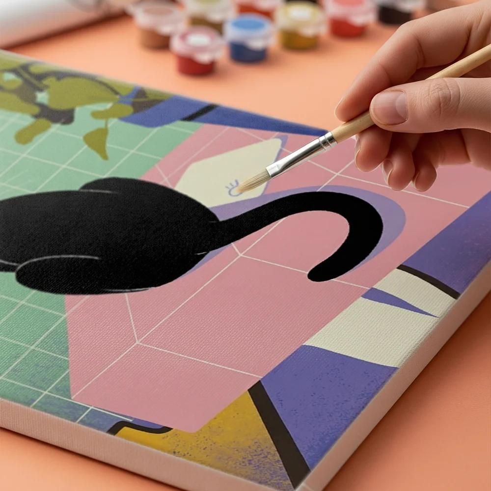 Los kits de pintura por números son muy fáciles de usar, por lo que puedes empezar a crear desde el primer momento. Antes de empezar a pintar, asegúrate de que el lienzo está plano y sin arrugas. Al planchar el lienzo, es más fácil pintar los cuadros y aplicar la pintura con mayor precisión. El resto es muy sencillo, poner música, encender una serie y ¡a pintar! Se recomienda rellenar primero todos los cuadrados de un color por completo, y en cuanto se termine un color, continuar con los siguientes. De este modo, no tendrás que lavar las brochas tan a menudo y obtendrás los mejores resultados. ¿Has terminado tu pintura? A continuación, debes dejar que se seque durante al menos un día para evitar las manchas y conseguir el mejor resultado. Una vez que la pintura se haya secado, puedes colocarla donde quieras.