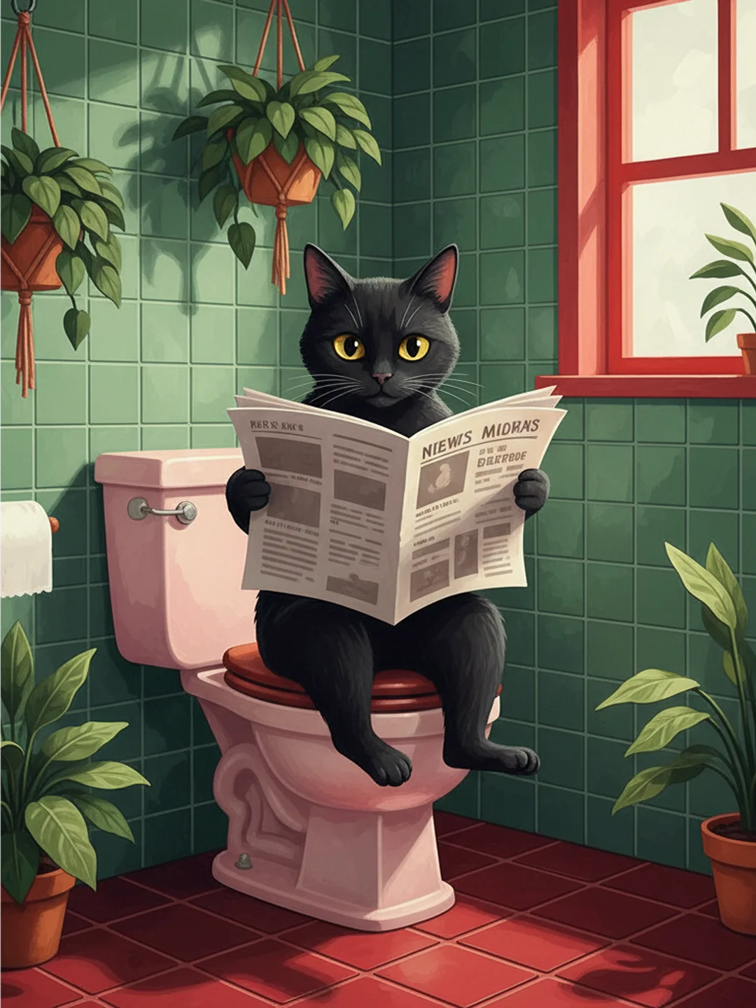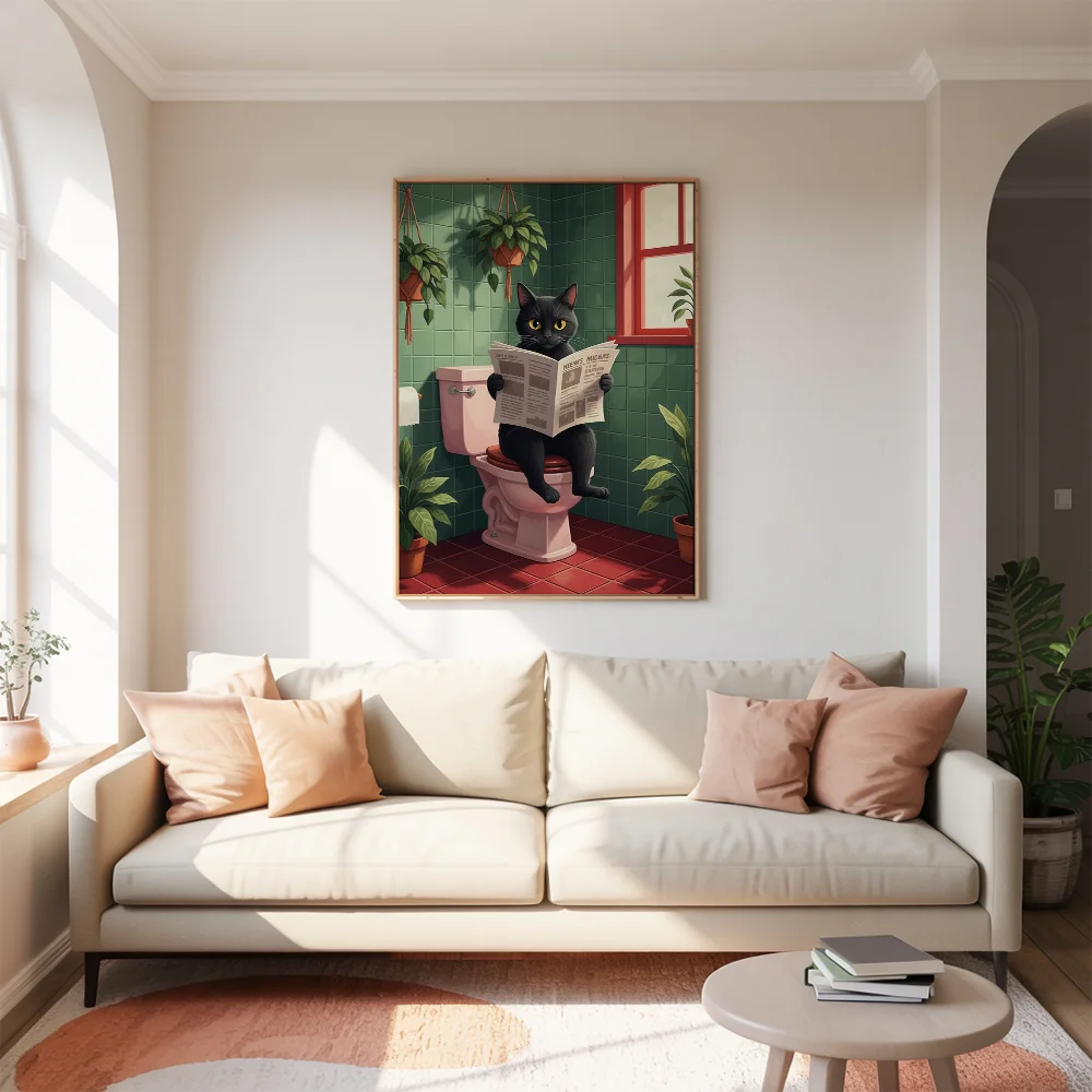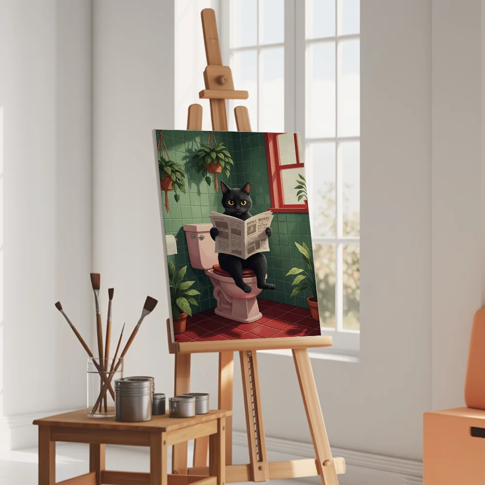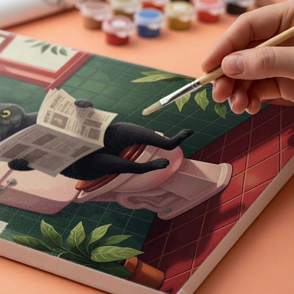 Pintar por Números – Gato en el baño leyendo el periódico