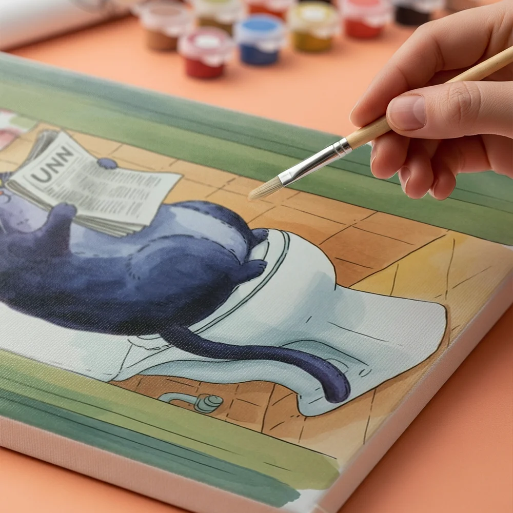 ¿Busca una salida para toda su creatividad, una actividad divertida para toda la familia? Esto es posible con el brillante, completo y profesional paquete de Pintar por Números – Gato leyendo en el baño. Para que puedas crear los más bellos cuadros en casa. El lienzo transparente de alta calidad le permite crear una obra de arte impresionante en poco tiempo. Deje que su interior brille con sus propias creaciones. Pintar por números es el pasatiempo perfecto para ti solo o para toda la familia.