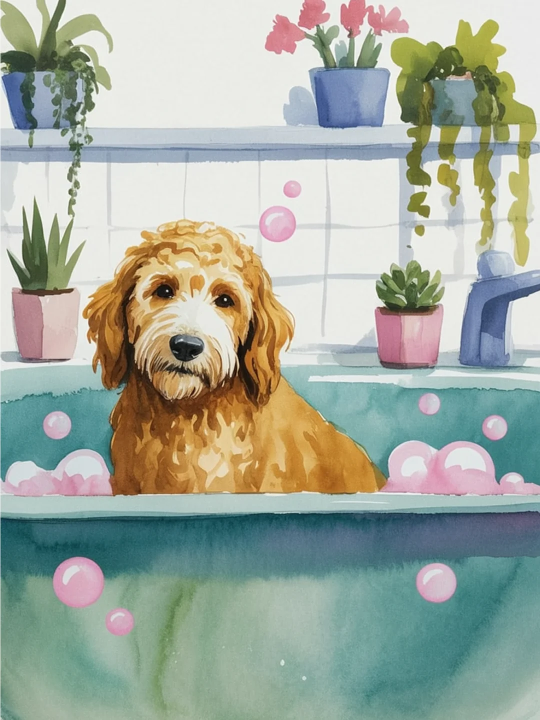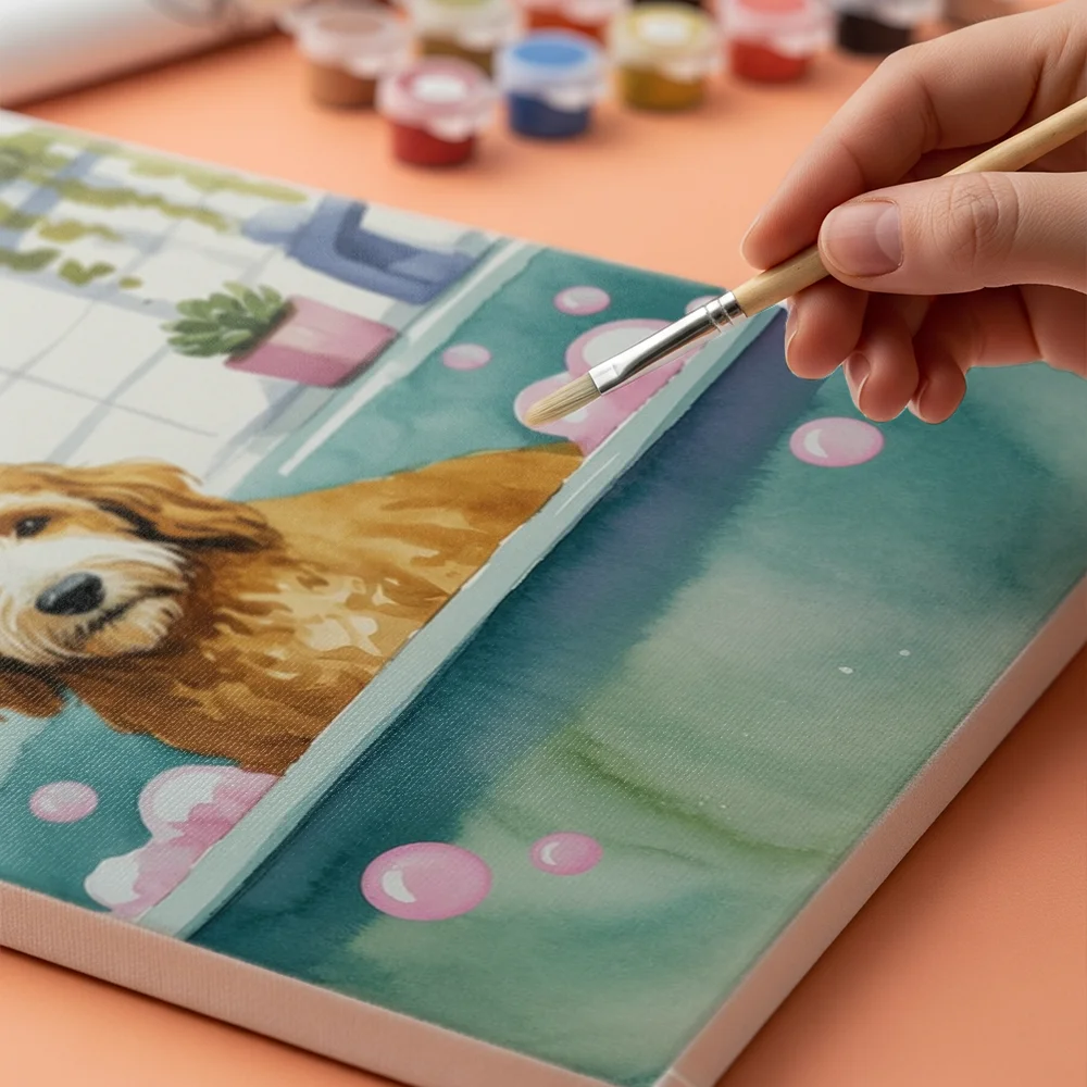• Pintar por Números – Goldendoodle en el baño