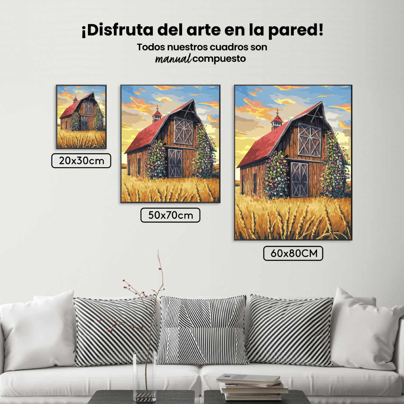 ¿Busca una salida para toda su creatividad, una actividad divertida para toda la familia? Esto es posible con el brillante, completo y profesional paquete de Pintar por Números – Granero rústico con tejado rojo en un campo dorado. Para que puedas crear los más bellos cuadros en casa. El lienzo transparente de alta calidad le permite crear una obra de arte impresionante en poco tiempo. Deje que su interior brille con sus propias creaciones. Pintar por números es el pasatiempo perfecto para ti solo o para toda la familia.