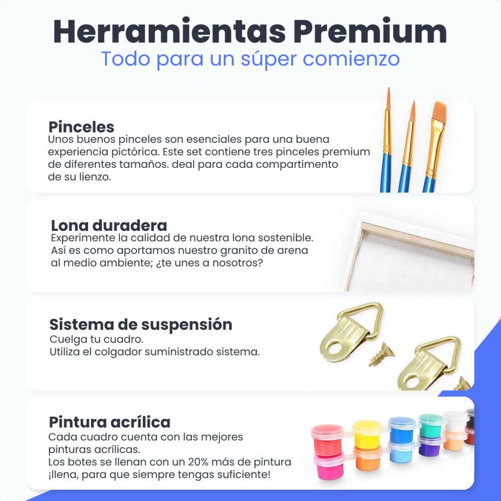Después de años de experiencia, hemos lanzado el set de pintar por números más completo del mercado – con todo lo que necesitas: