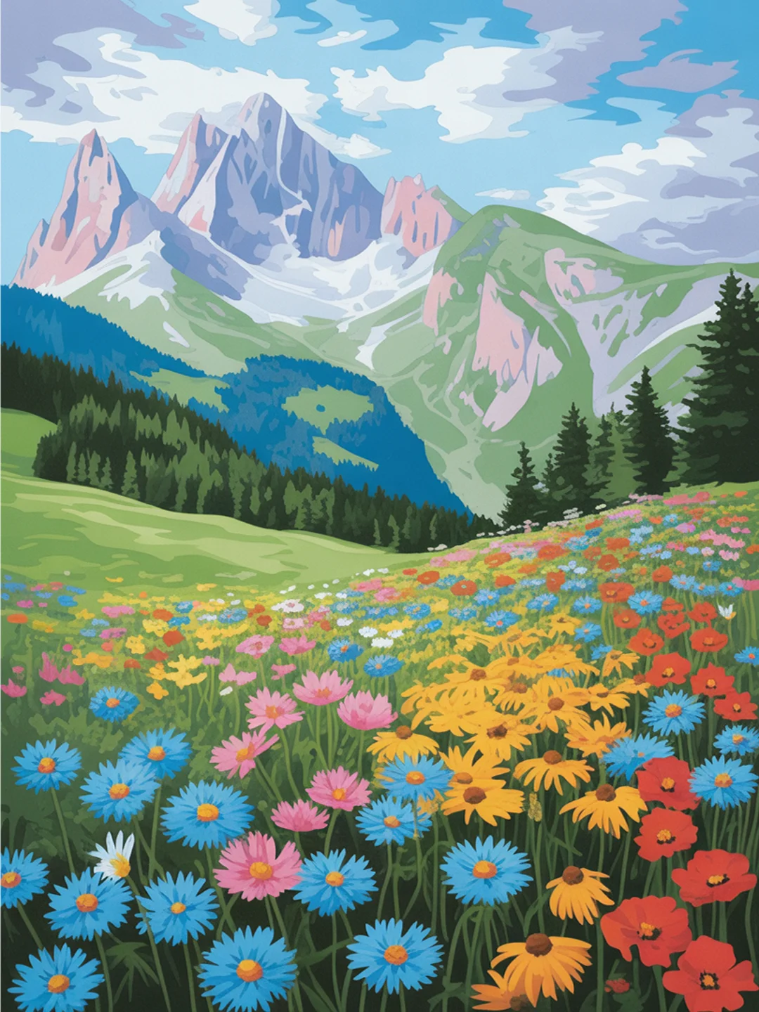 Pintar por Números – Lago de flores silvestres de montaña 3
