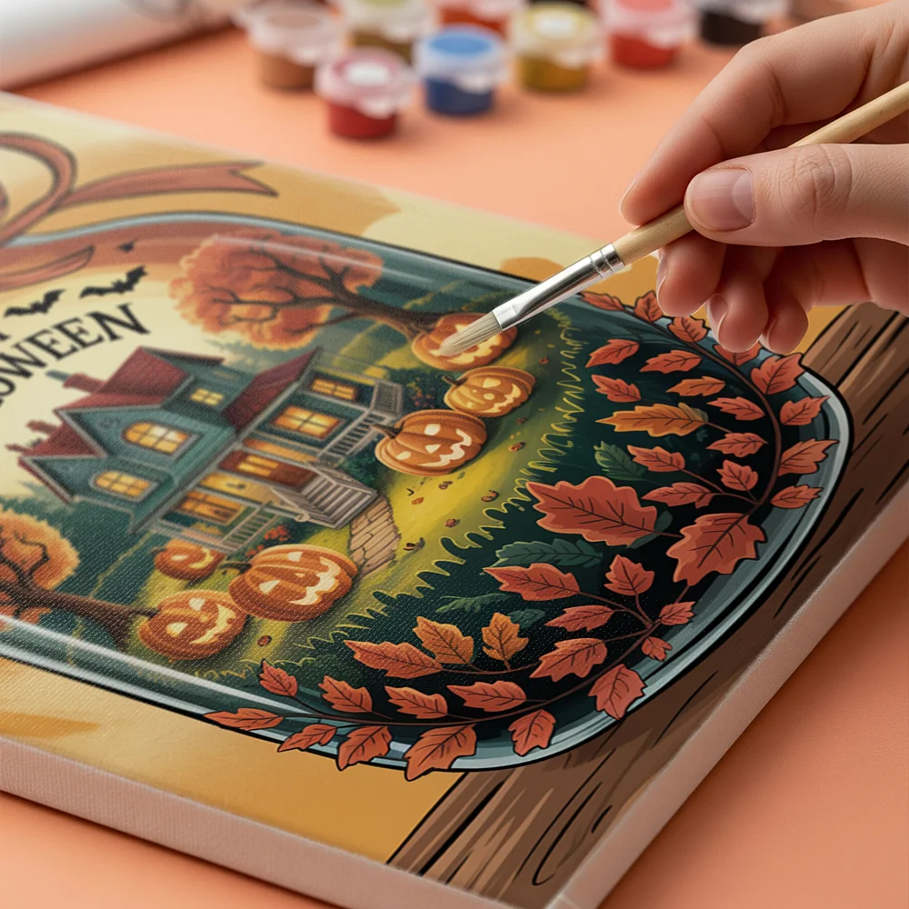 Pintar por Números – Maceta espeluznante con calabazas
